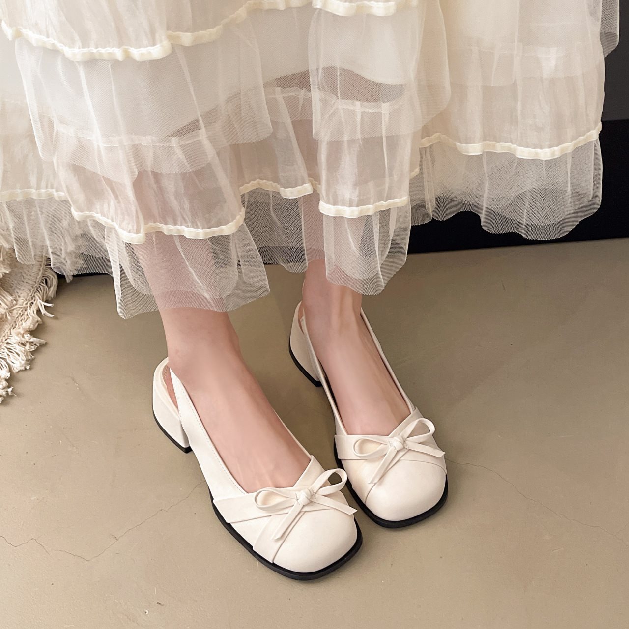 할로우 낮은 활 여름 달콤한 우아한 발가락 샌들 힐 신발 2025 할로우 젠틀 프랑스 새로운 여성 신발스토어 가기