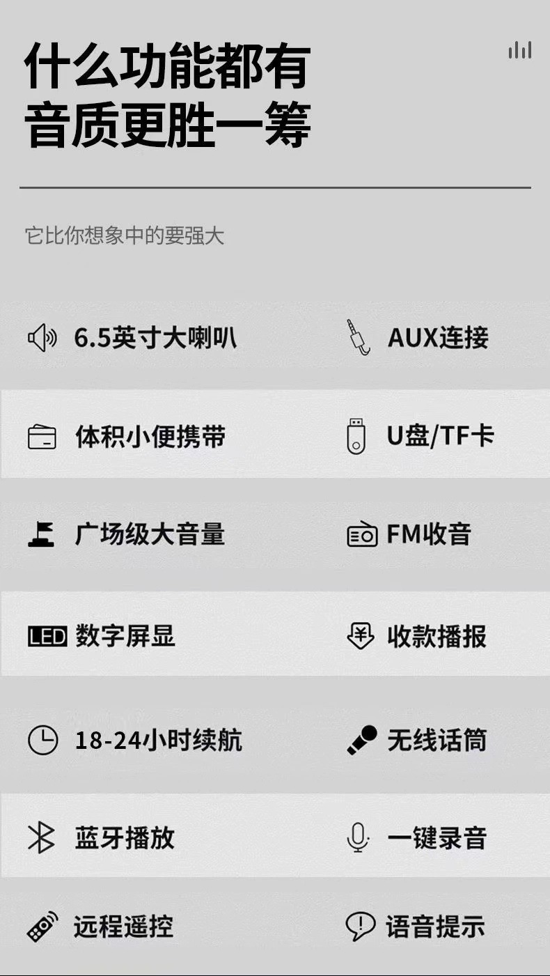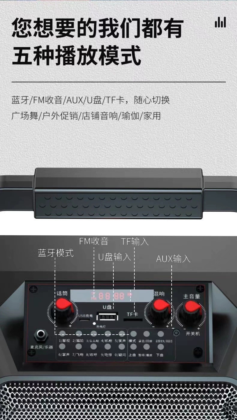 • 6.5inch 블루투스 대형 스피커 모델에는 리모컨이 포함되어 있으며 스트랩 전투 모델이 포함되어 있습니다.