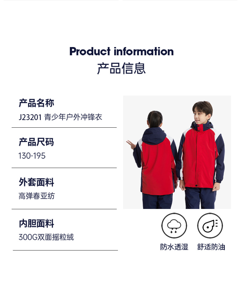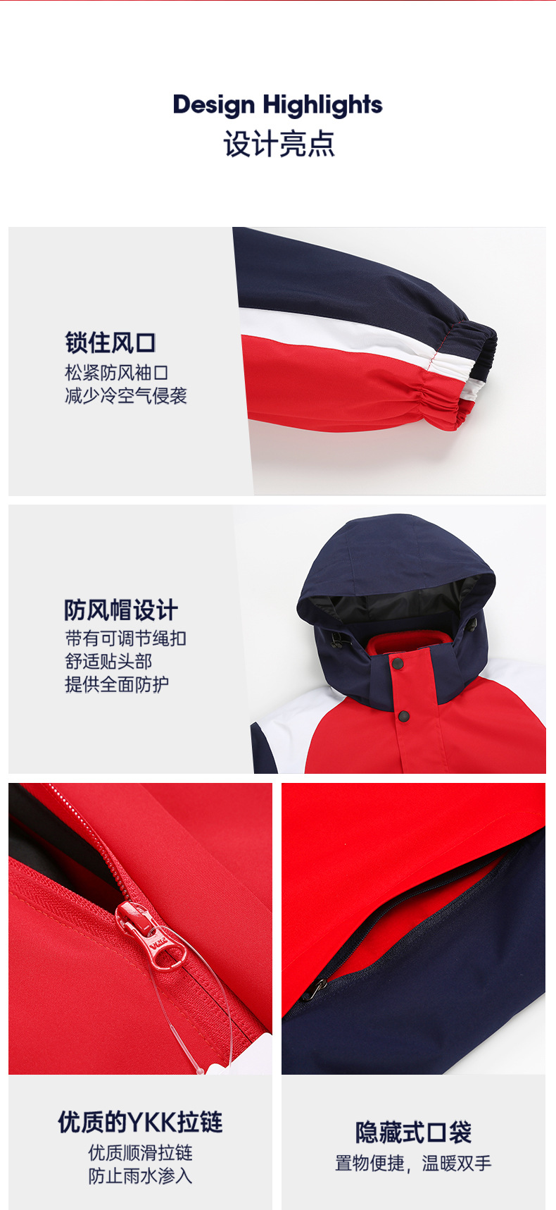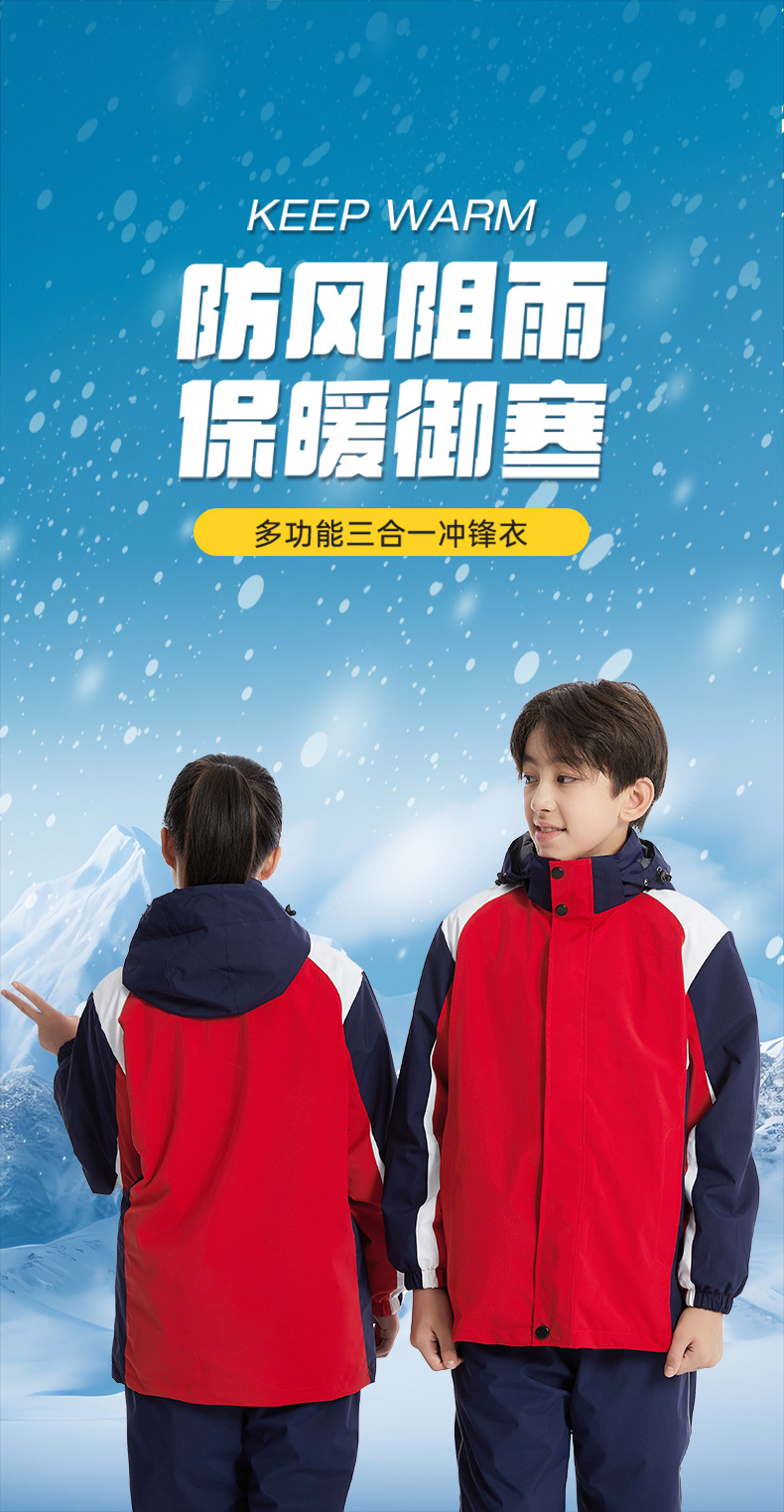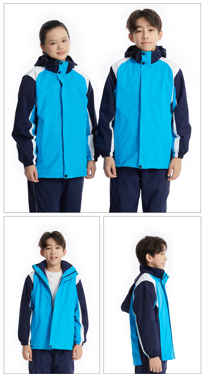 교복 아동용 재킷 3-in-one 분리형 방수 및 방풍 학급 유니폼 초등 및 중등 학생 야외 재킷 도매