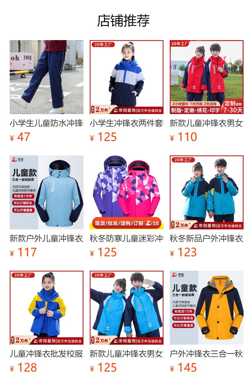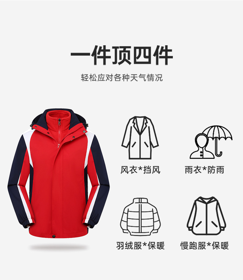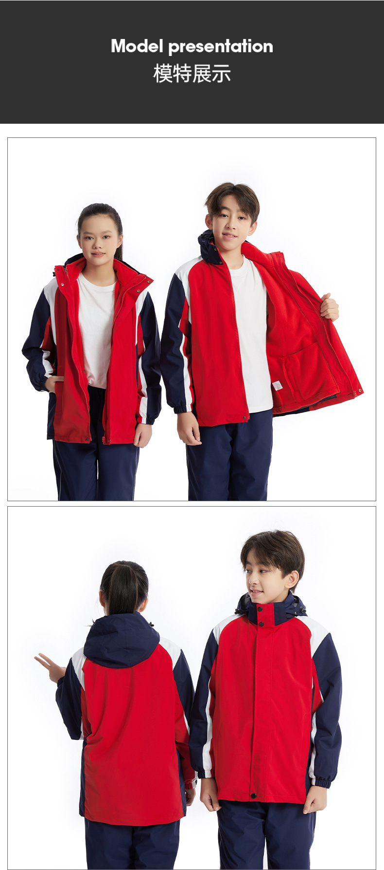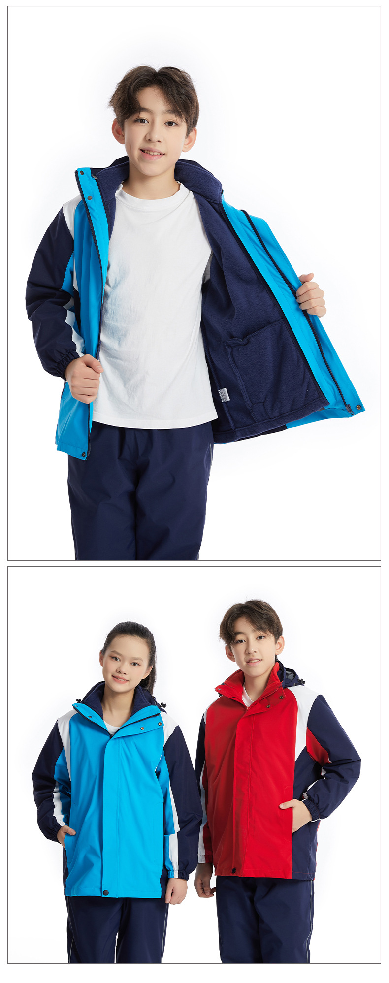 교복 아동용 재킷 3-in-one 분리형 방수 및 방풍 학급 유니폼 초등 및 중등 학생 야외 재킷 도매스토어 가기