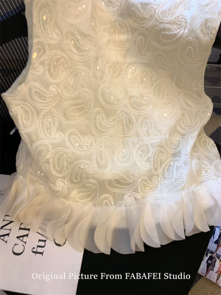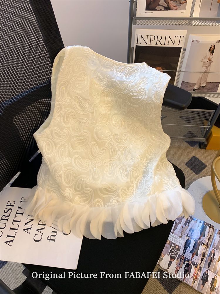 여성을 위한 여름 독특한 스타일의 스팽글 자수 조끼 셔츠, 다용도의 입체 꽃잎 스플라이싱 민소매 조끼스토어 가기