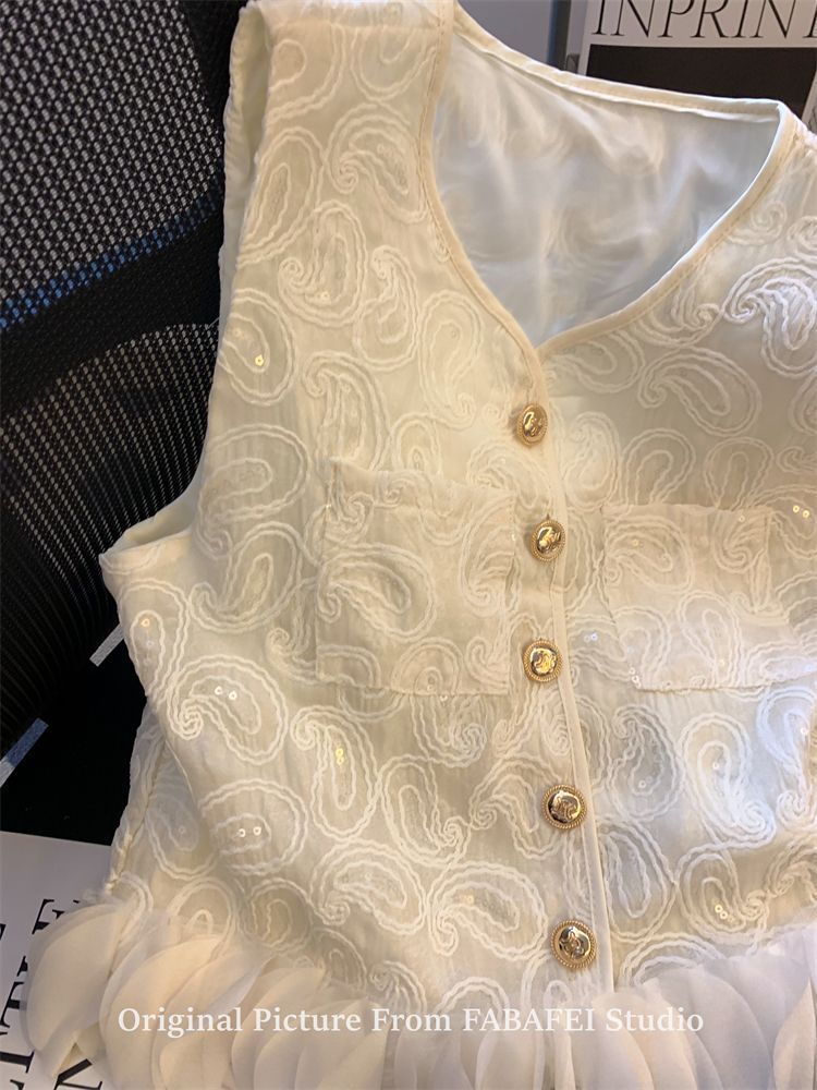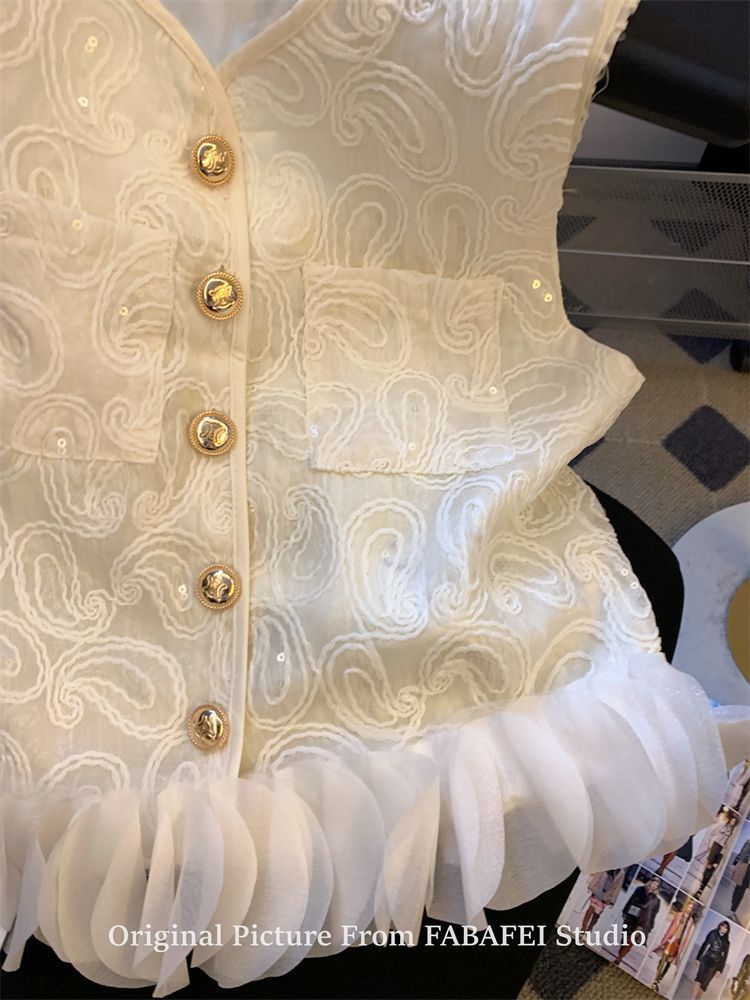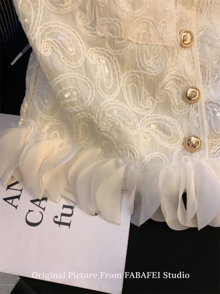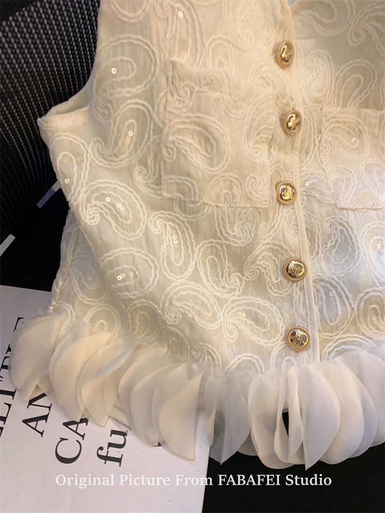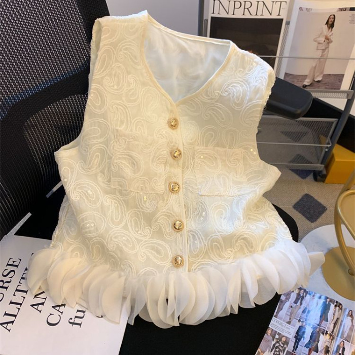 여성을 위한 여름 독특한 스타일의 스팽글 자수 조끼 셔츠, 다용도의 입체 꽃잎 스플라이싱 민소매 조끼