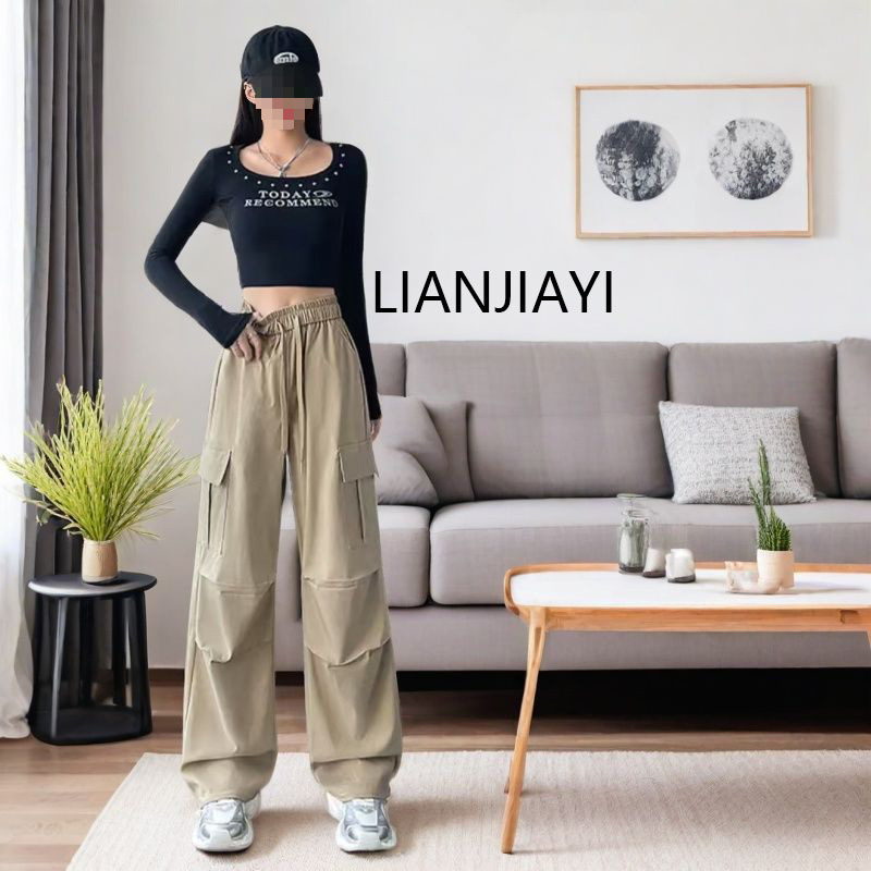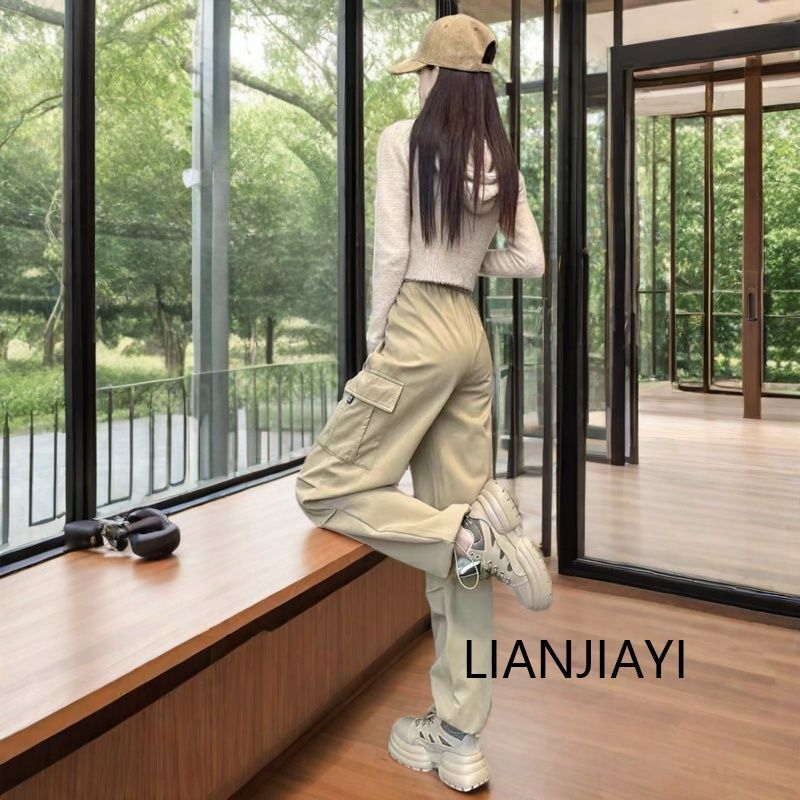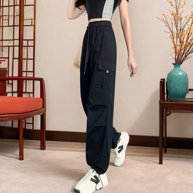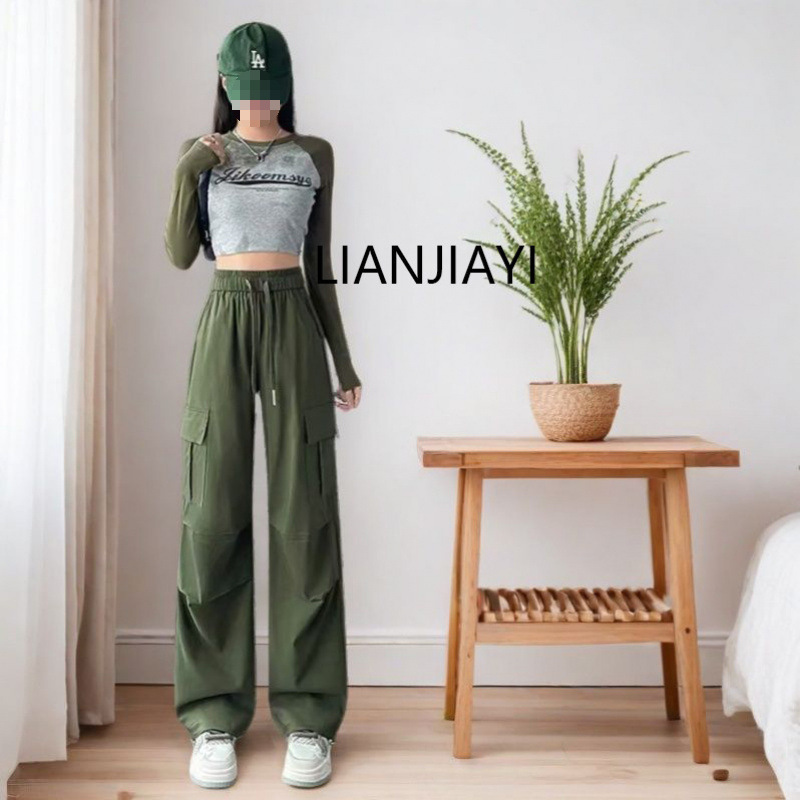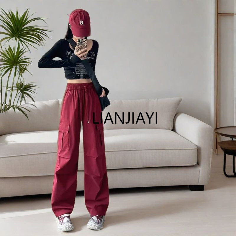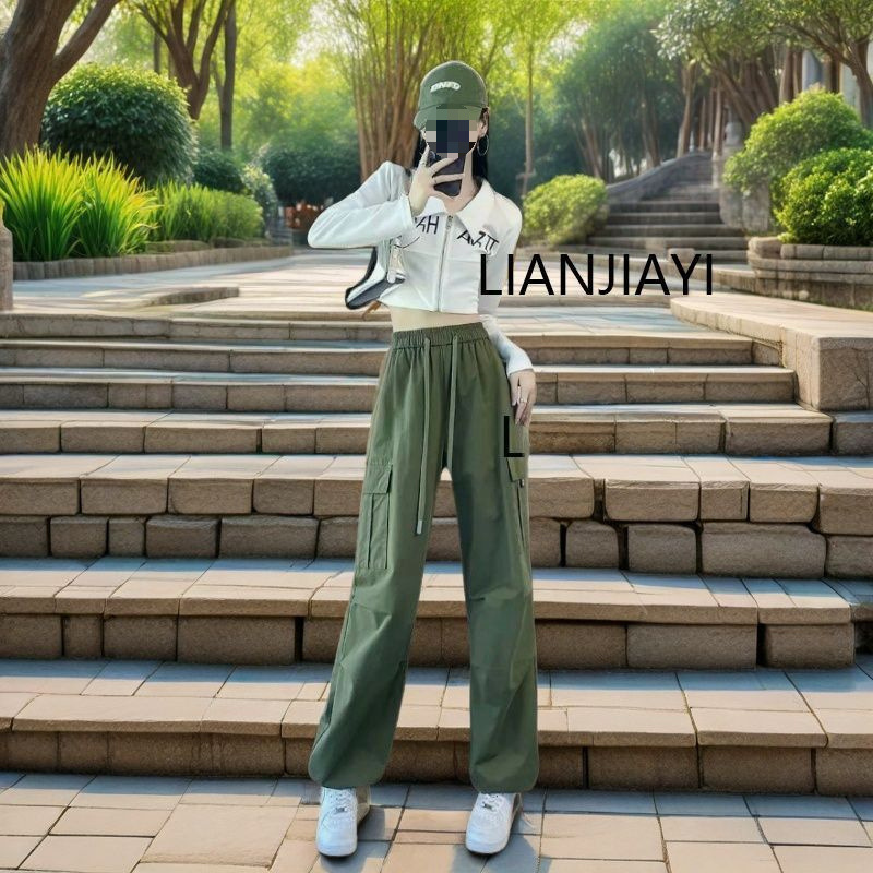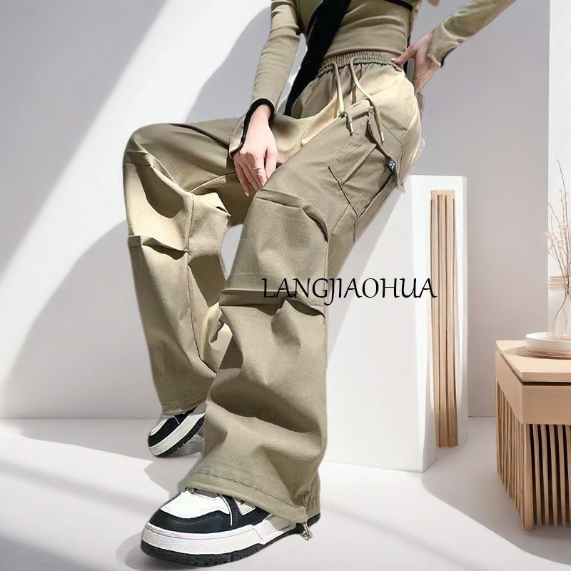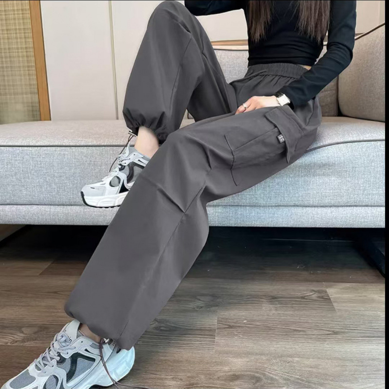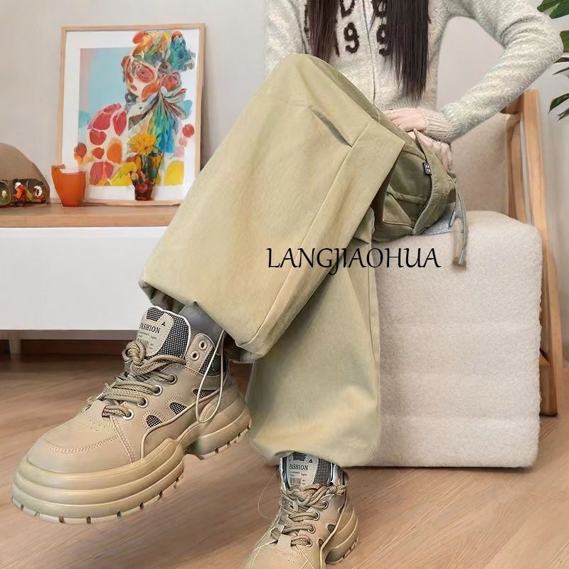 여성용 작업복 봄, 가을 야외 하이 웨이스트 스트레이트 루즈 스포츠 슬리밍 블랙 와이드 레그 남성 및 여성용 새로운 하이킹 바지스토어 가기