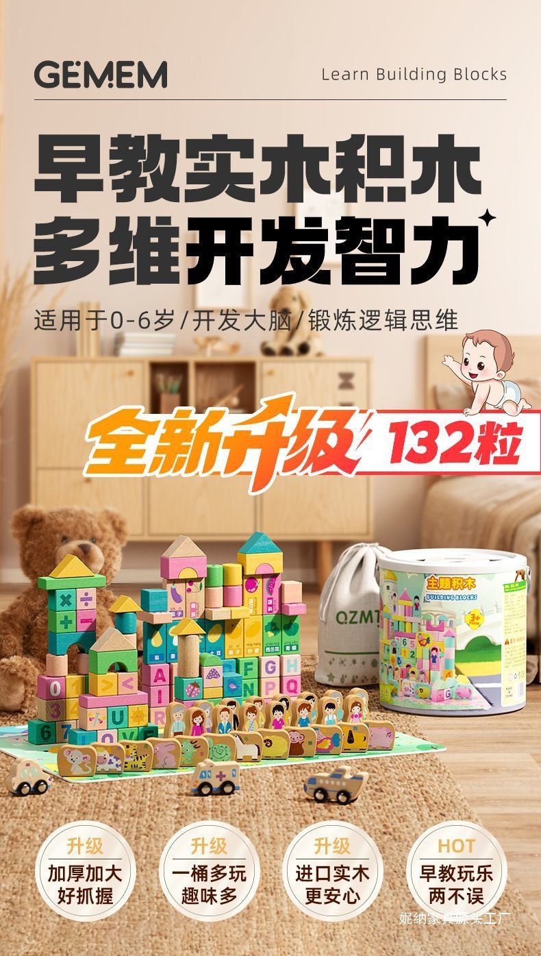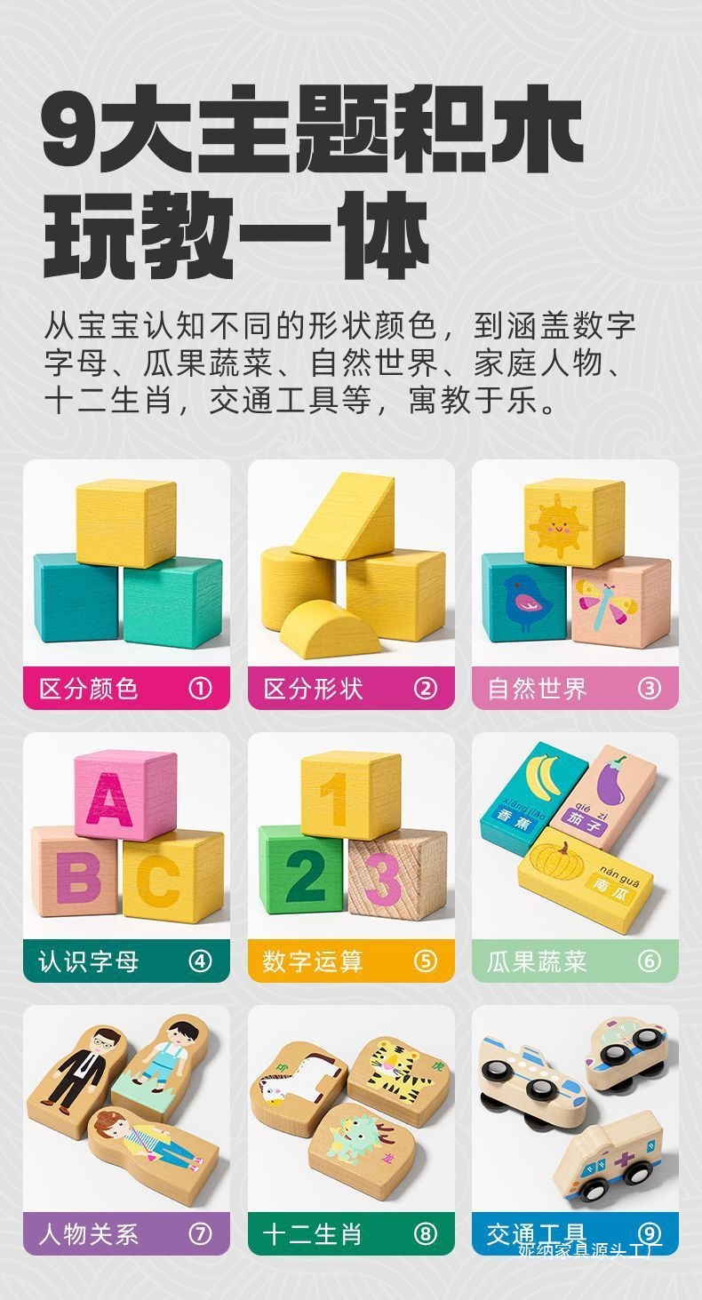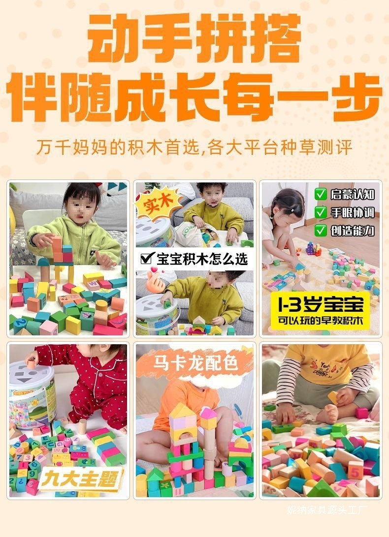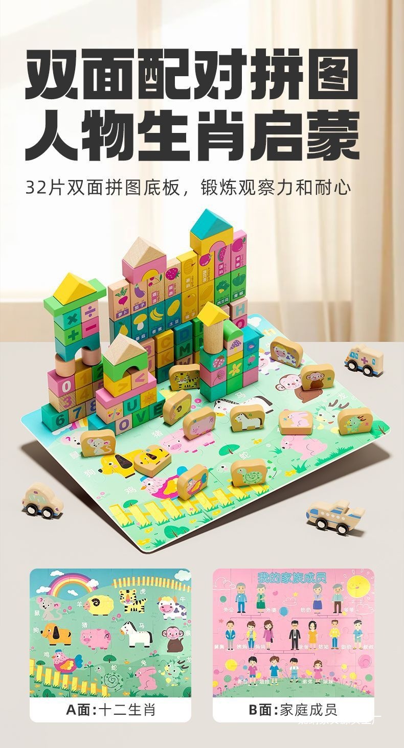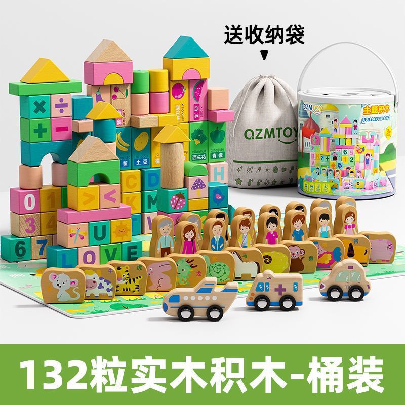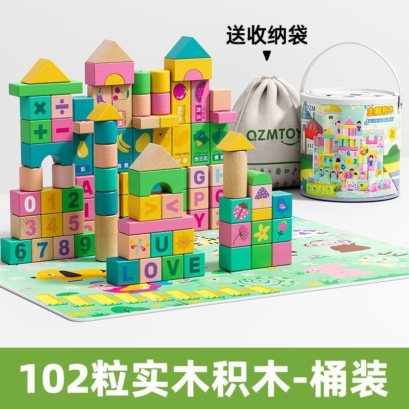 어린이 단단한 나무 빌딩 블록 대형 입자 숫자 문자 조립 장난감 유아 1-3 세 소년과 소녀 조기 교육스토어 가기