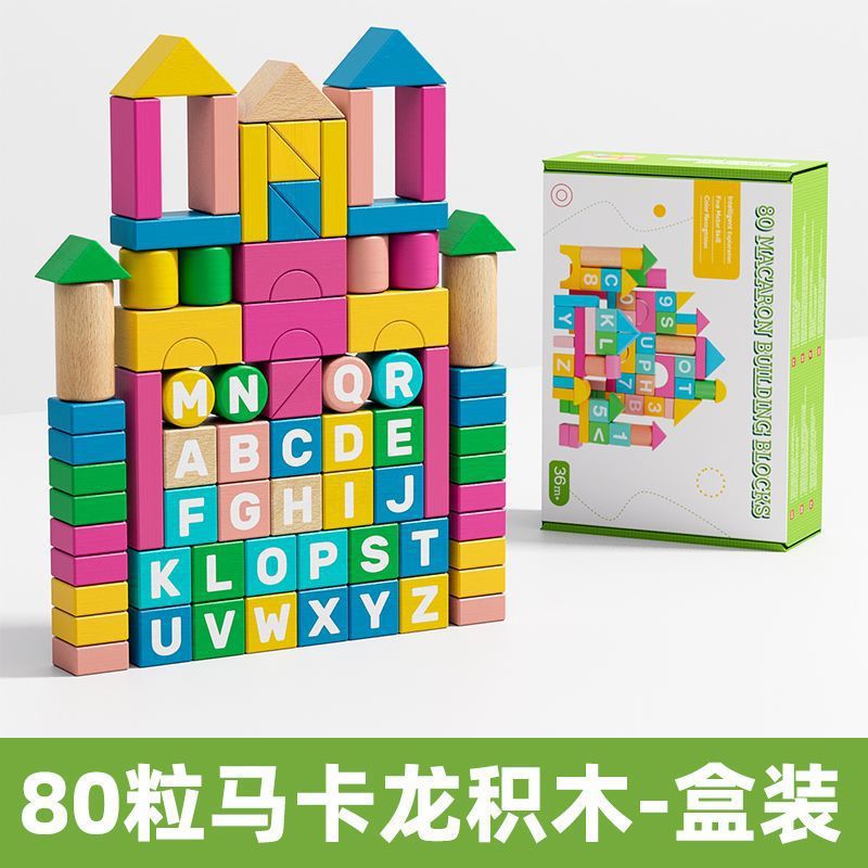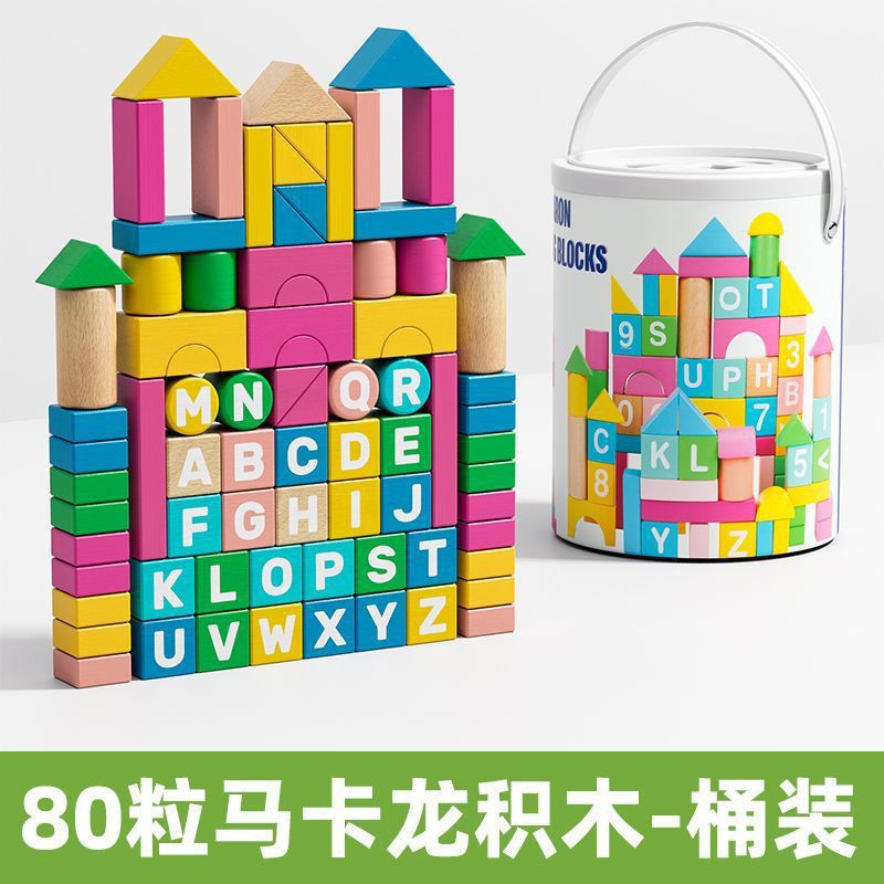 • 원목 [통] 숫자 및 문자 조기 교육용 빌딩 블록 80개