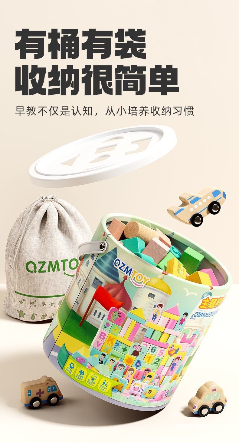 • 원목 102개 [통 + 가방] 5가지 주요 테마 + 양면 매칭 퍼즐
