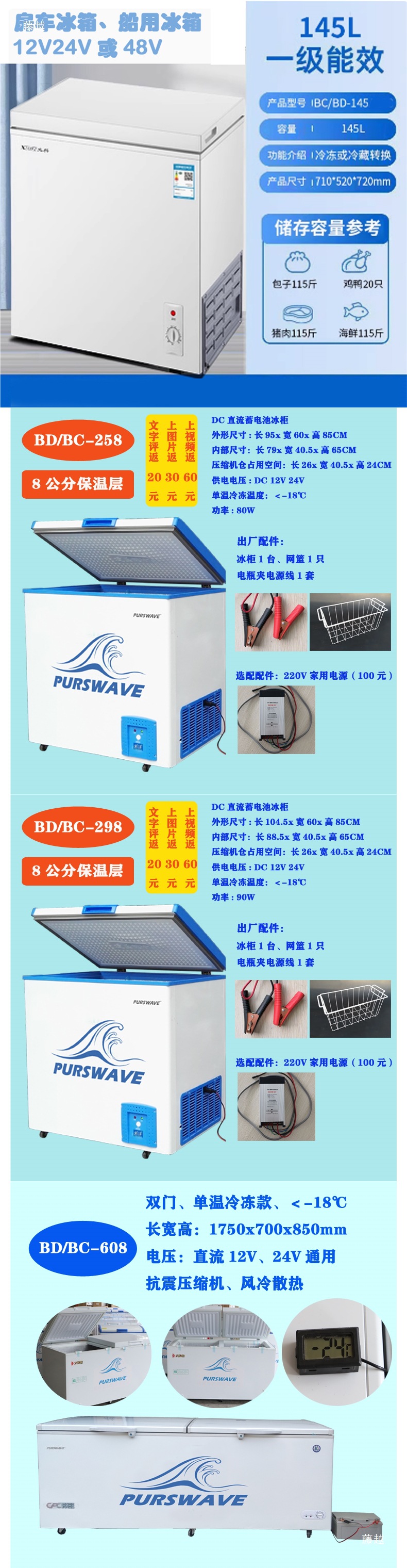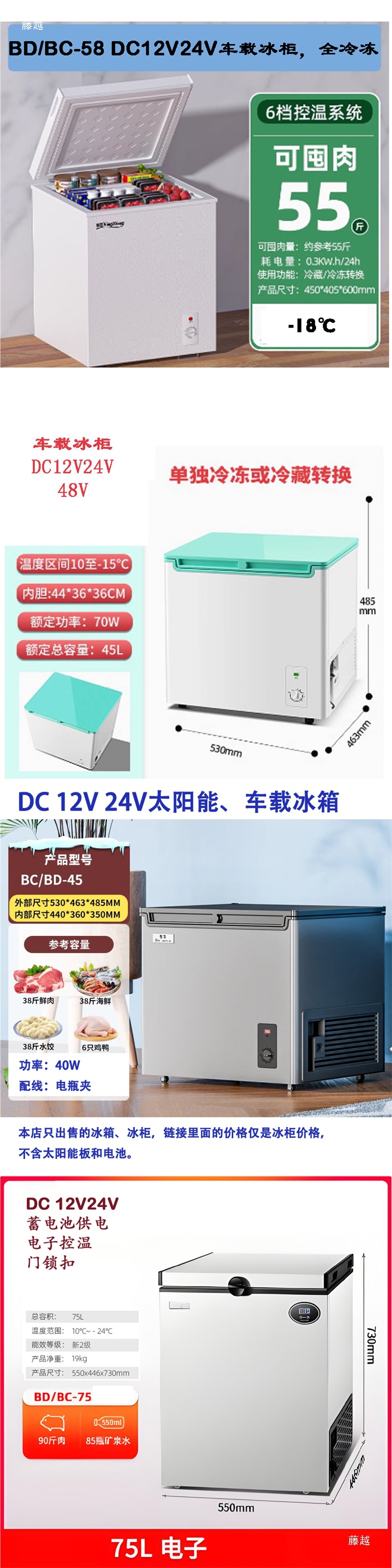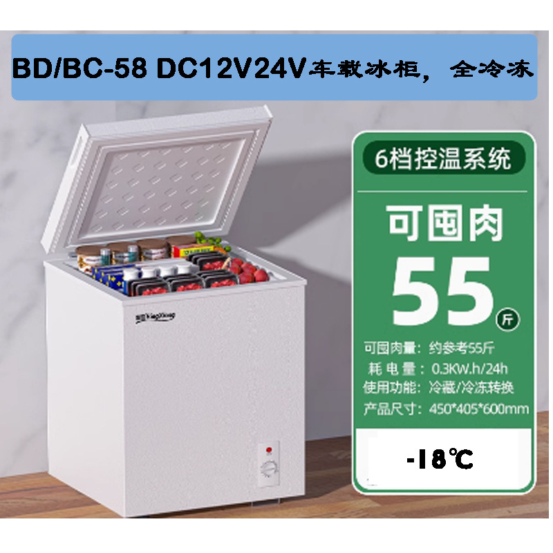 BD/BC-58 자동차 냉장고 DC 냉동고 배터리 태양열 RV 냉장고 12V24V 냉장 및 냉동 가능