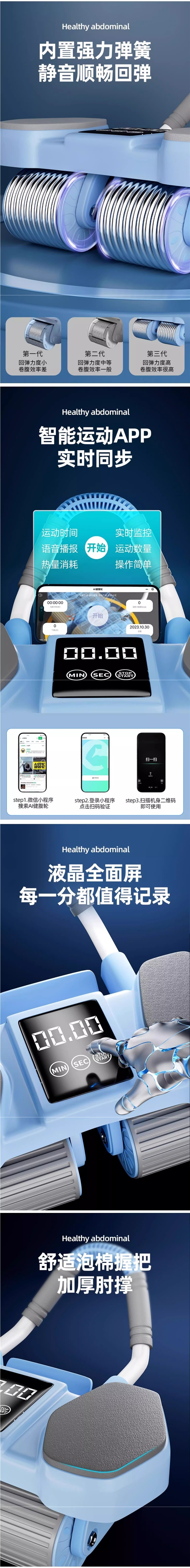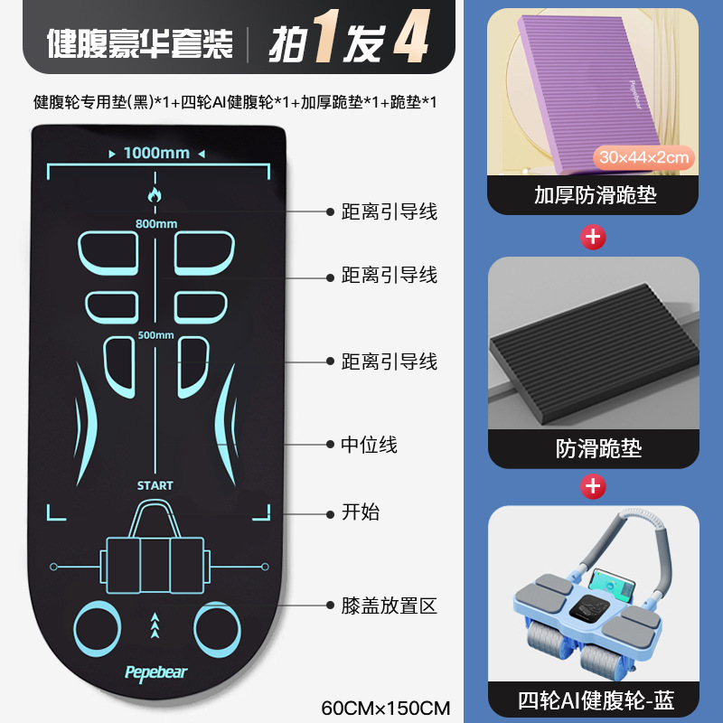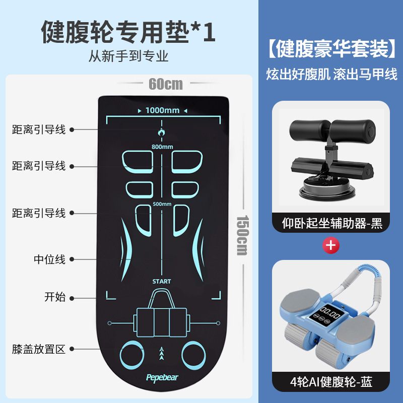 • [럭셔리 콤비네이션 모델-블루] 업그레이드된 4륜 AI 복부 휠 + 복부 휠 패드(블랙 & 블루) + 윗몸 일으키기 보조기, 프리 닐링 패드