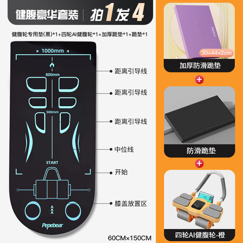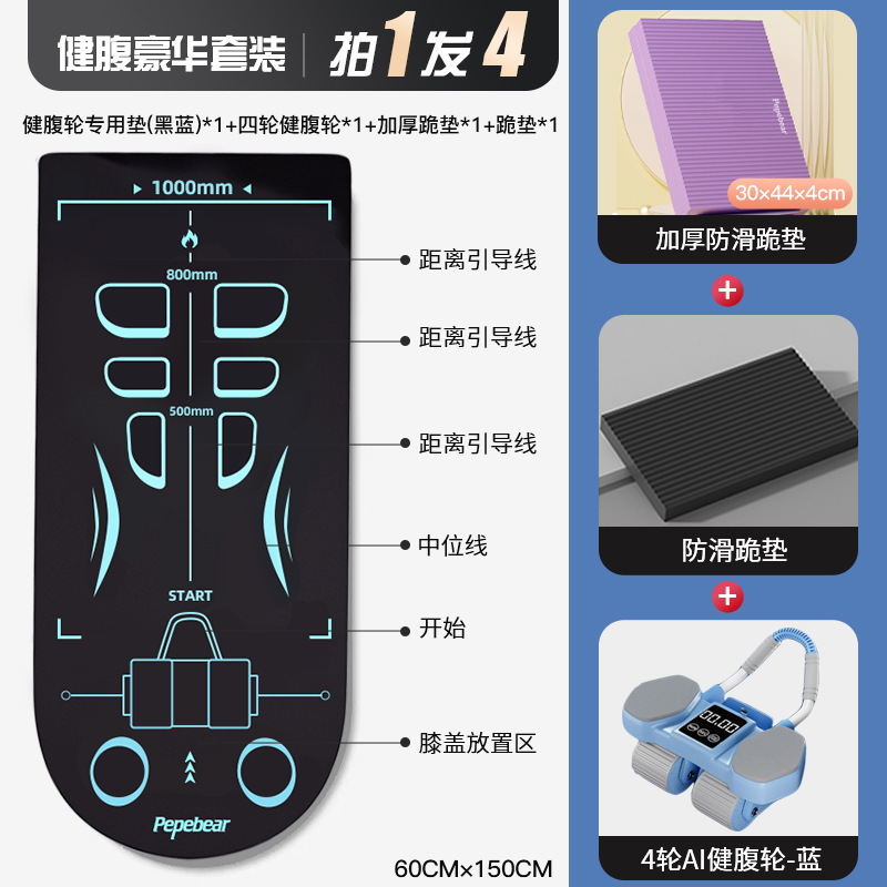 • [럭셔리 콤비네이션 모델-블루] 업그레이드된 4륜 AI 복부 휠 + 복부 휠 패드 + 윗몸 일으키기 보조 장치 및 프리 무릎 패드