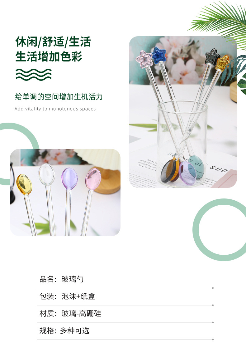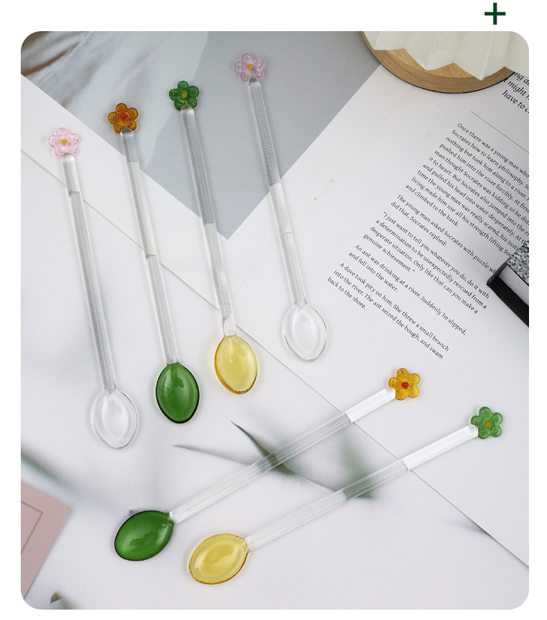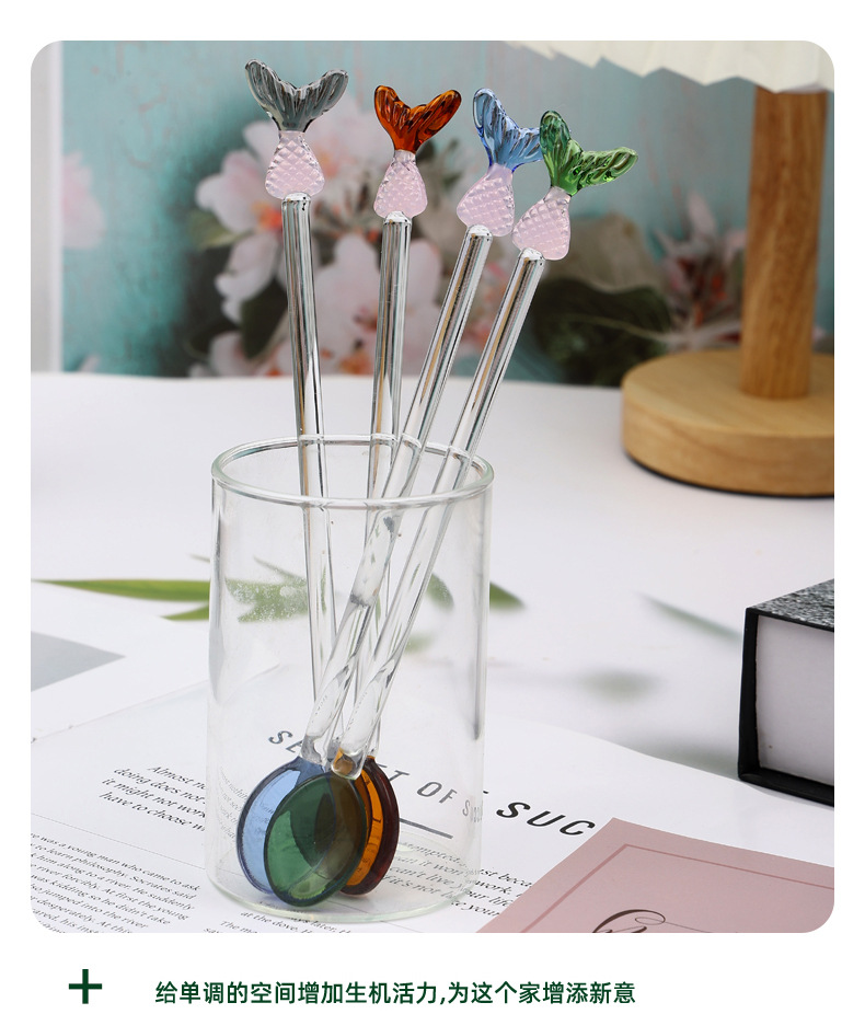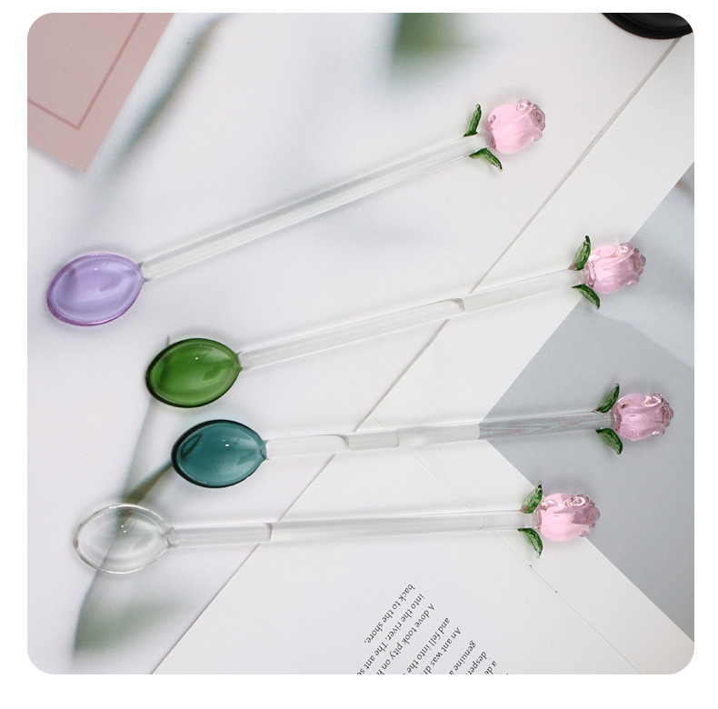 혼합 숟가락 선인장 귀여운 유리 스푼 커피 분유 혼합 숟가락 우유 차 주스 음료 혼합 숟가락