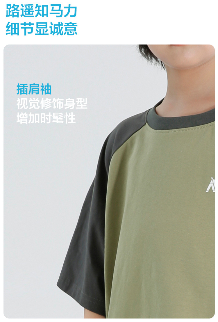 Haima의 2025 년 여름 새 소년 Raglan 소매 반팔 티셔츠 여름면 얼음 도자기 큰 어린이를위한 옷스토어 가기