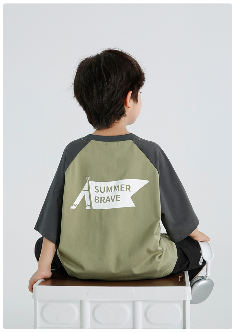Haima의 2025 년 여름 새 소년 Raglan 소매 반팔 티셔츠 여름면 얼음 도자기 큰 어린이를위한 옷