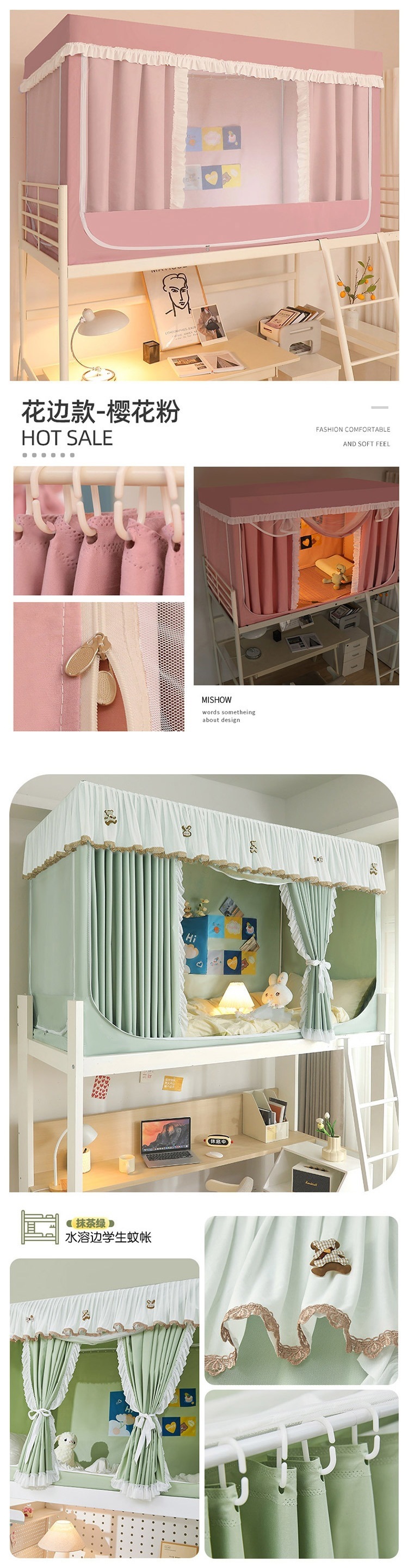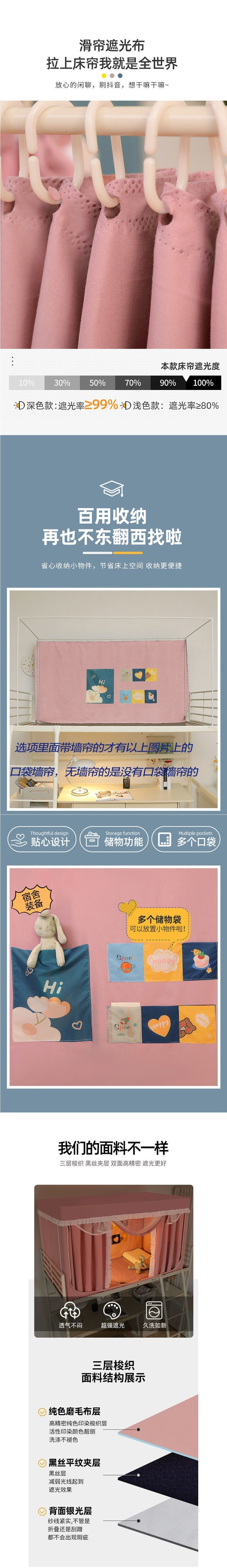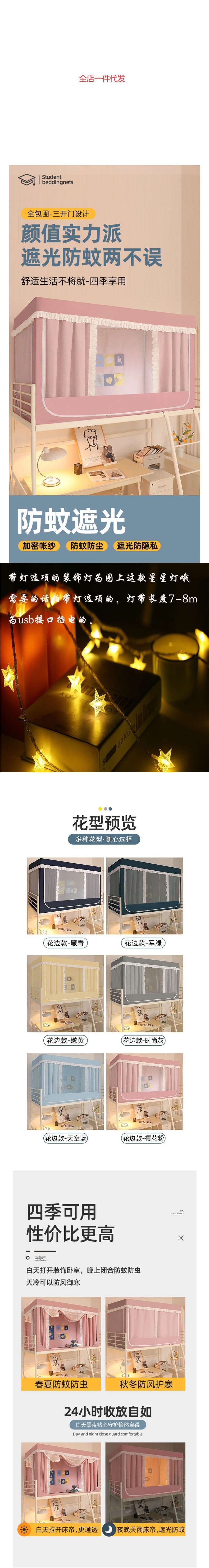 도매 도매 핑크 여성 학생 침대 커튼 모기장 통합 올인원 강한 음영 침대 커튼 대학 기숙사스토어 가기