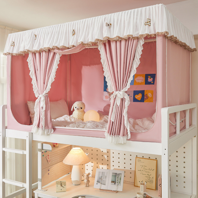 도매 도매 핑크 여성 학생 침대 커튼 모기장 통합 올인원 강한 음영 침대 커튼 대학 기숙사