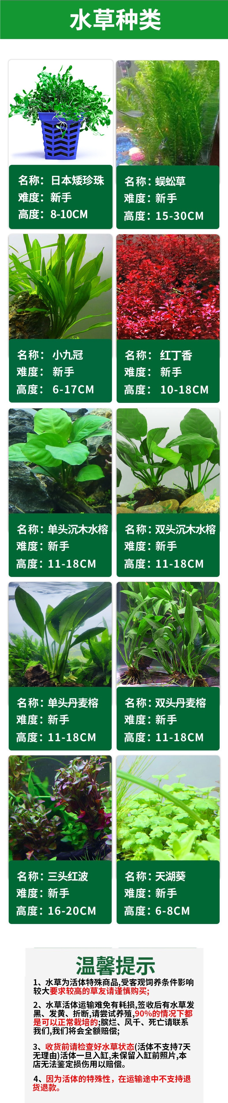 • [초보 수생 식물 패키지] 심기가 필요한 30-40개의 탱크에 적합합니다.