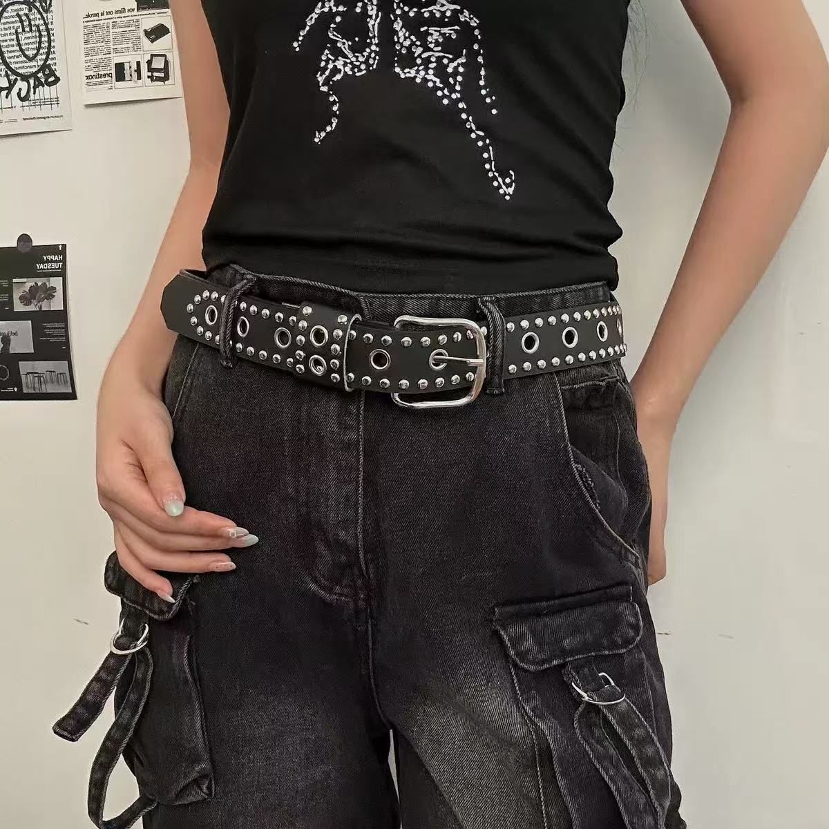 속이 빈 디자인, 다공성 리벳 가죽 벨트, 여성용 펑크 스타일 맞춤형 힙합 벨트, 달콤하고 시원한 틈새 매칭 액세서리스토어 가기