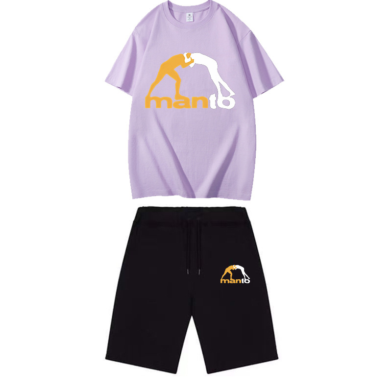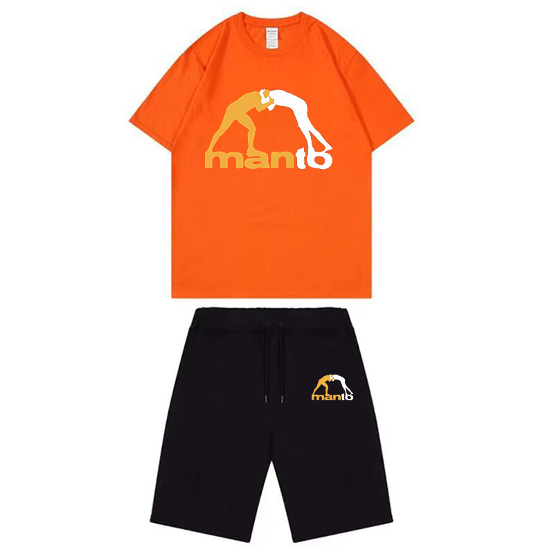 국경 간 여름 아마존 남성용 반팔 반바지 투피스 세트 트렌디 캐주얼 스포츠 라운드 넥 코튼 티셔츠 세트스토어 가기
