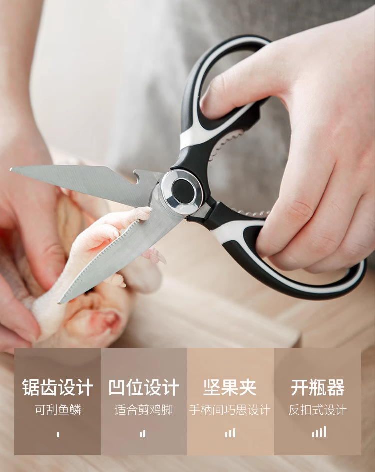 닭뼈를 자르고 생선을 죽이는 가정용 강력 가위, 스테인리스 다기능 가위, 식품 보충 가위, 바베큐 가위, 날카로운 팬더 가위
