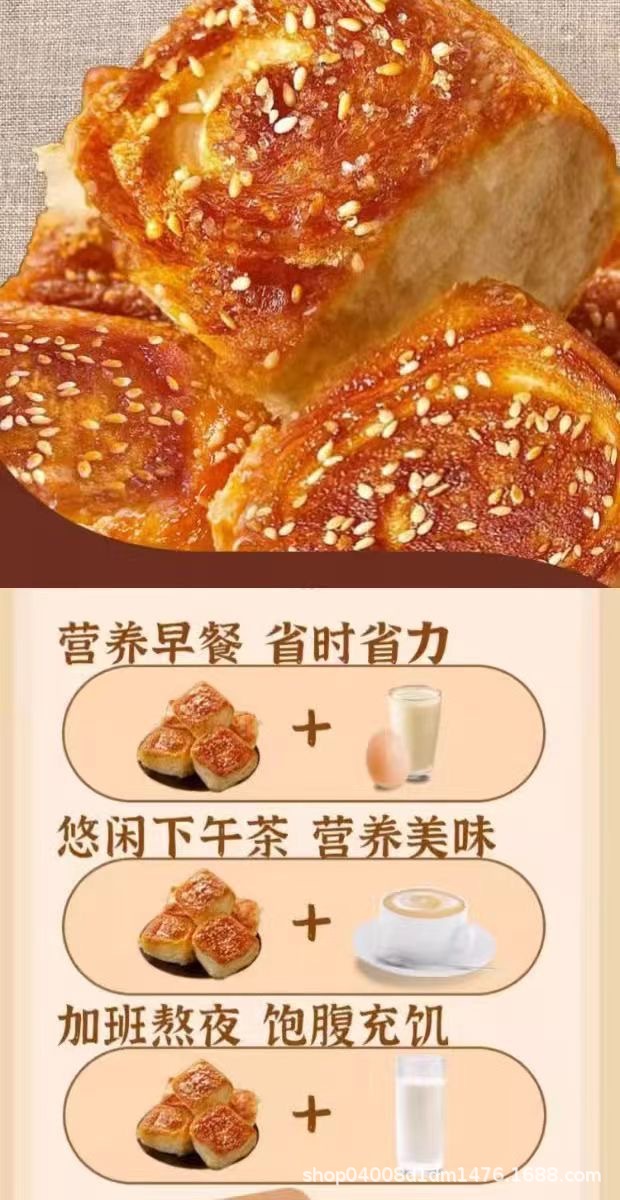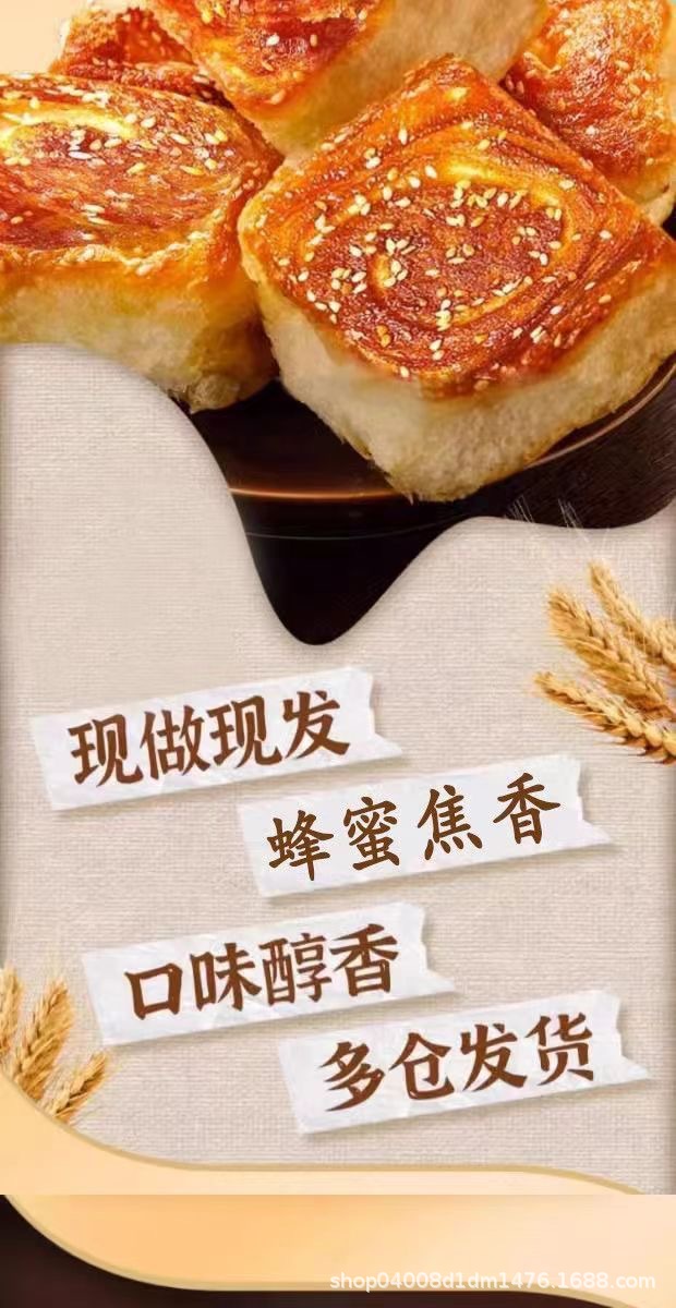 꿀 크리스프 바닥 빵 올드 스타일 빵 골드 크리스프 하단 케이크 아침 식사 전체 상자 스낵 식품 즉시 솔질