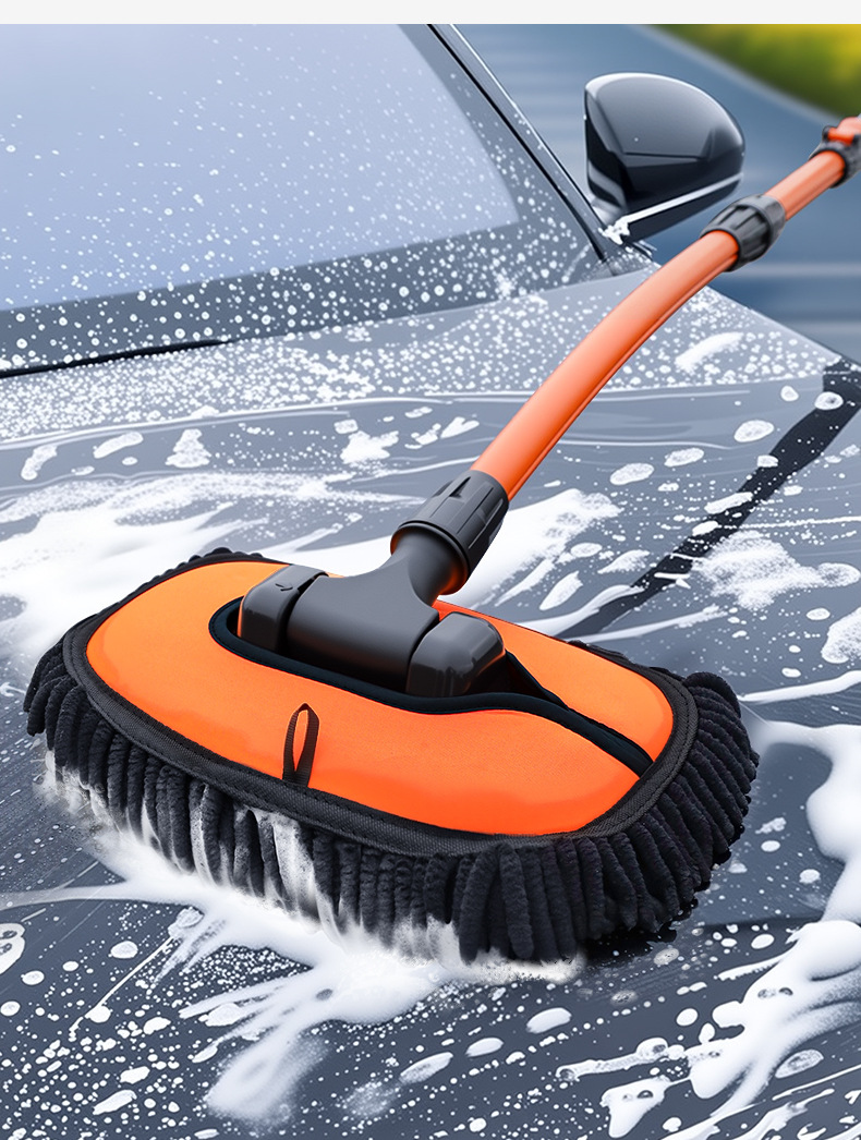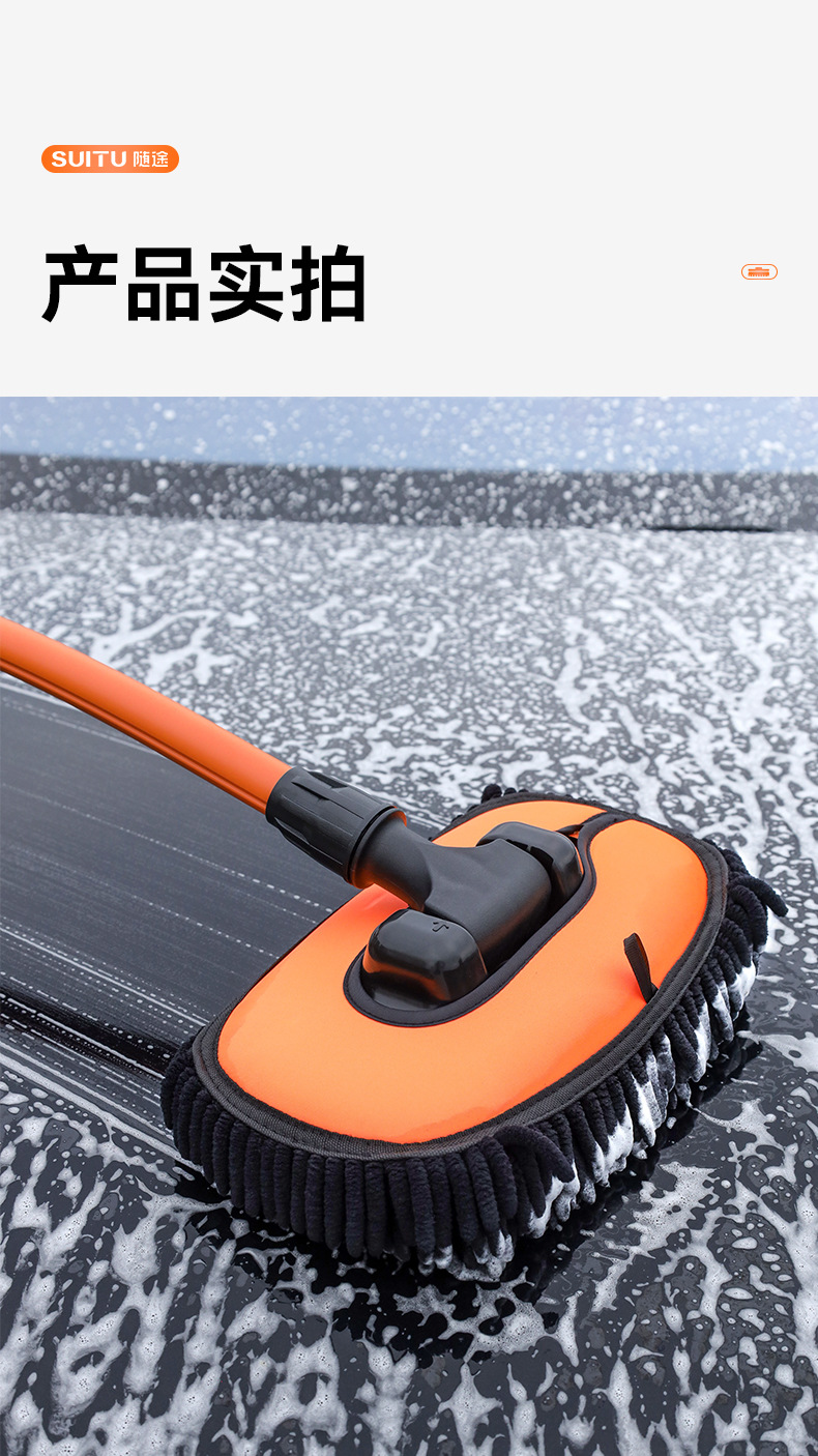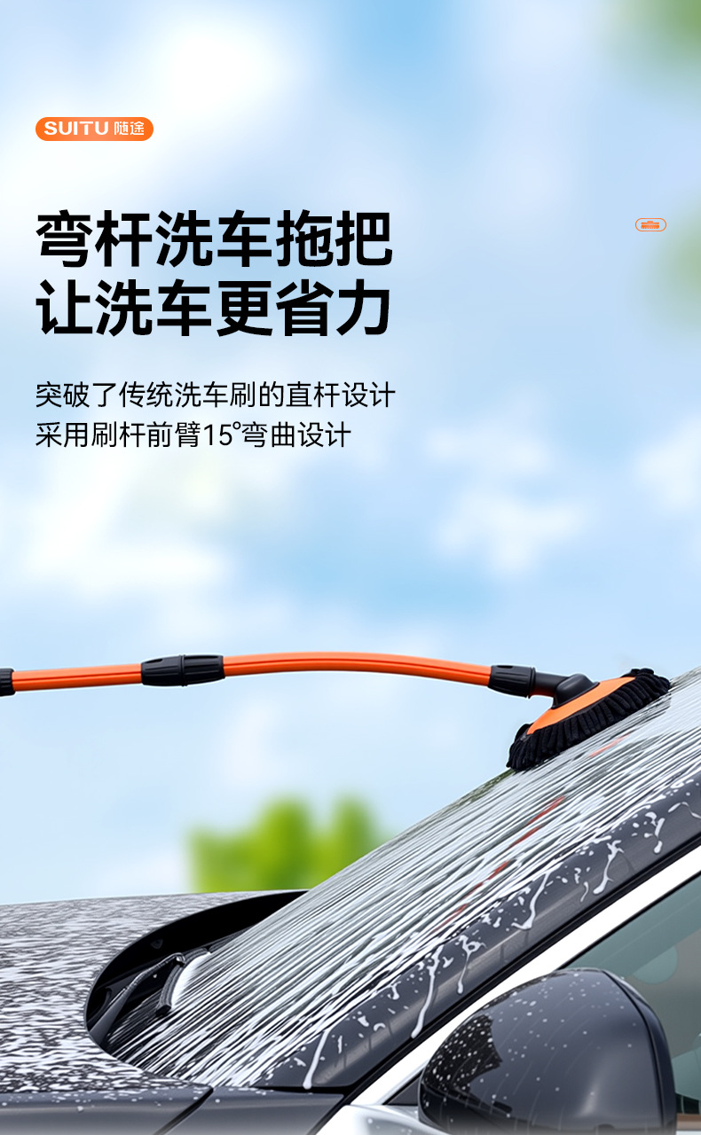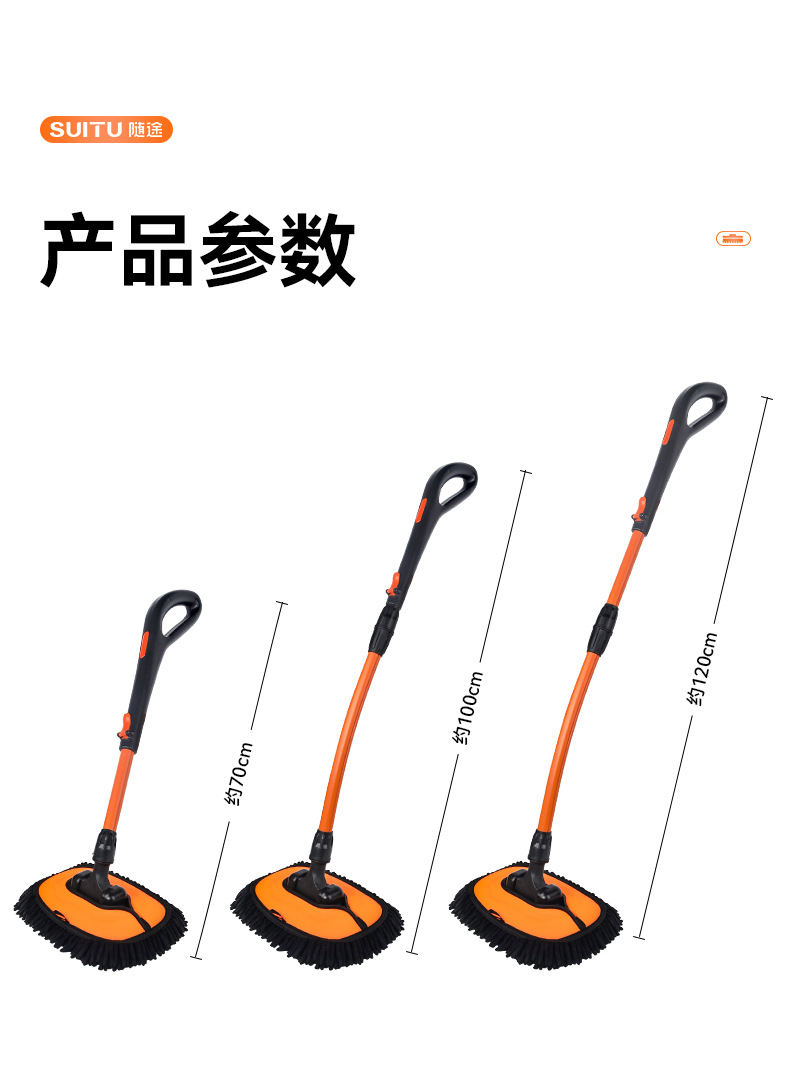 【产品名称】:大手柄弯管雪尼尔洗车刷拖