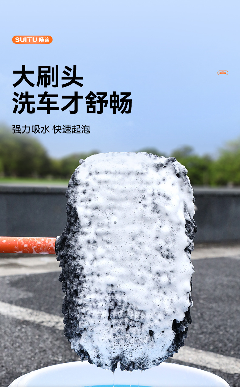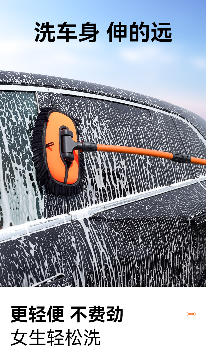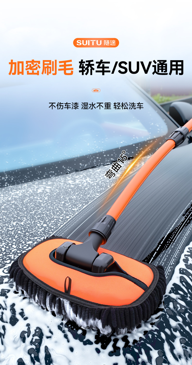 【产品名称】:大手柄弯管雪尼尔洗车刷拖