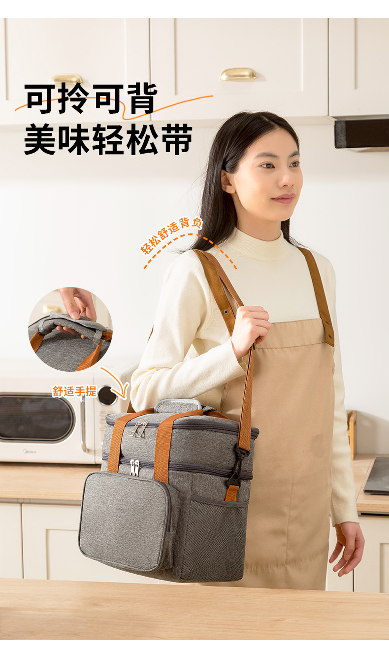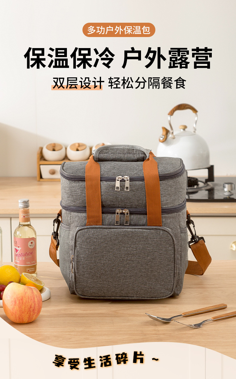 아마존 더블 레이어 점심 가방 크로스 바디 쌀 절연 가방 야외 피크닉 방수 아이스 백 절연 가방