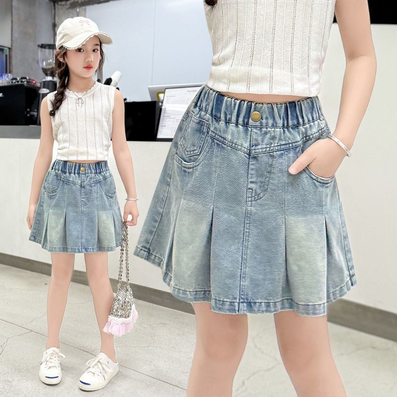 여자 스커트 여름 2025 새로운 어린이 데님 스커트 여름 중대형 어린이 인터넷 연예인 스타일 여자 스커트
