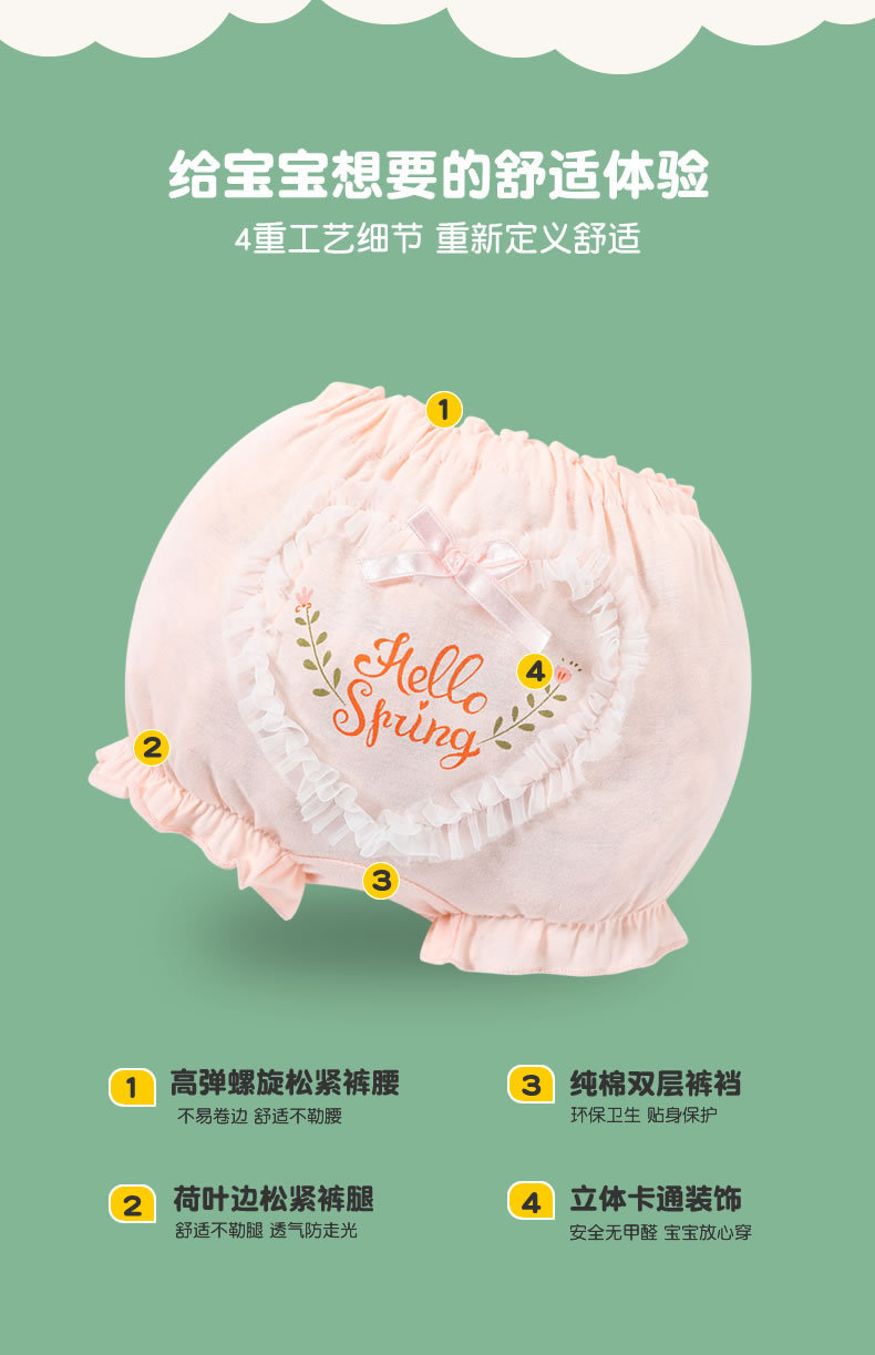 여아 속옷, 사각팬티, 아동 사각팬티, 큰 리본 아기 속옷, 카테고리 A