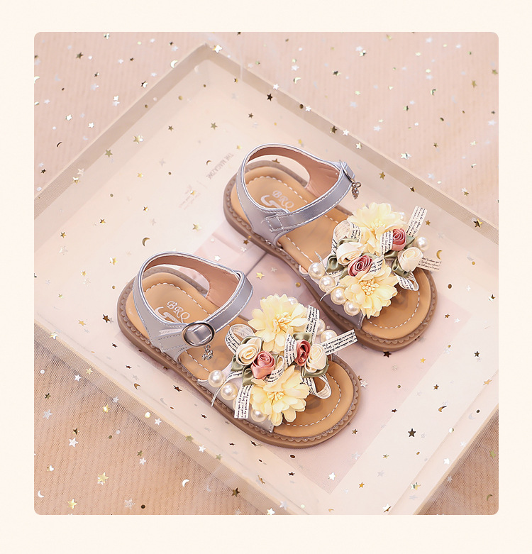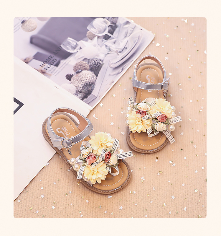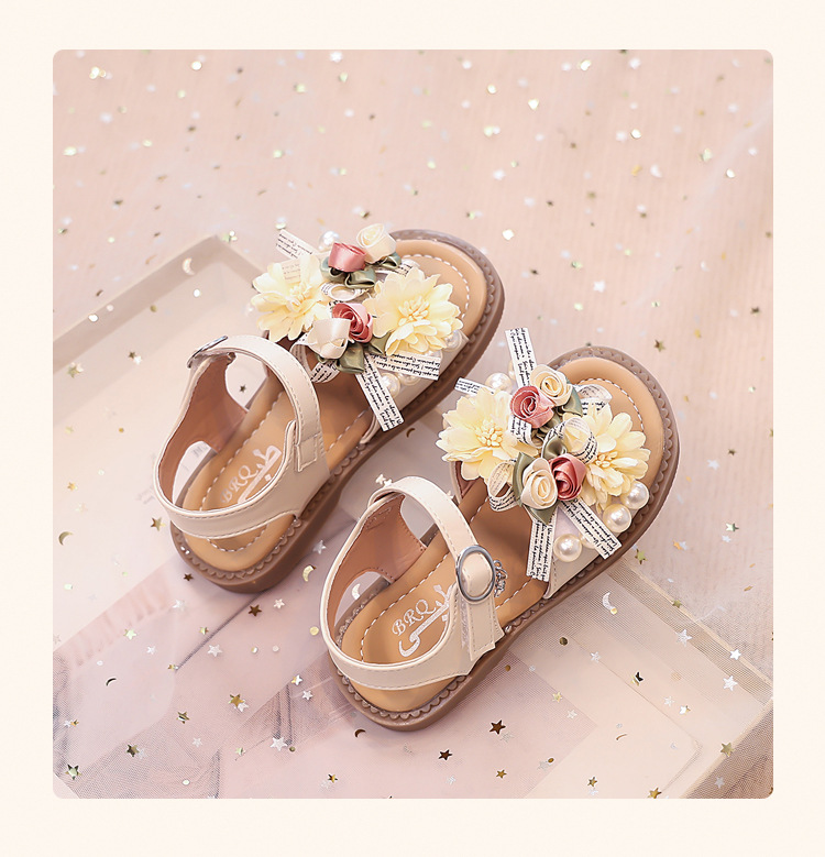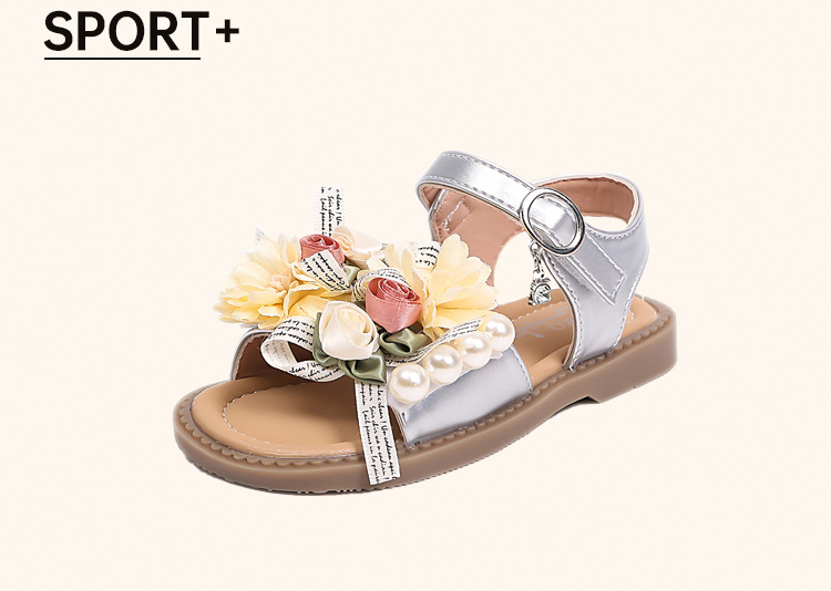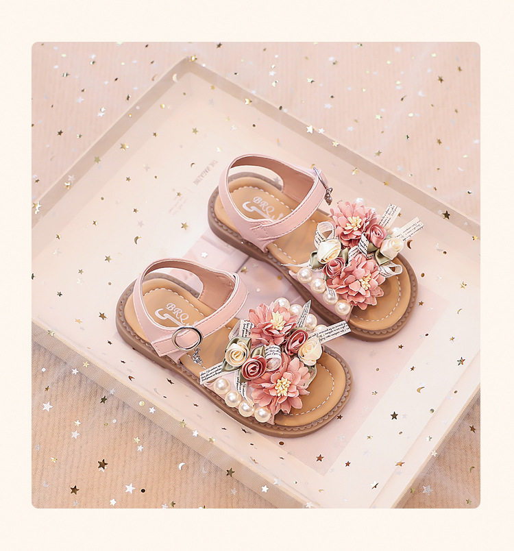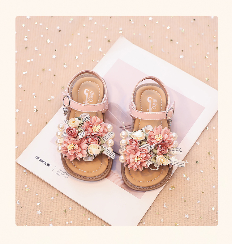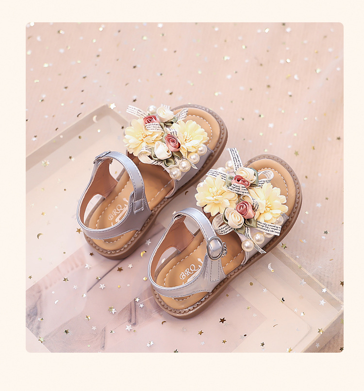 2025 새로운 여름 소녀 진주 꽃 오픈 발가락 샌들 달콤한 소녀 캐주얼 스포츠 비치 신발