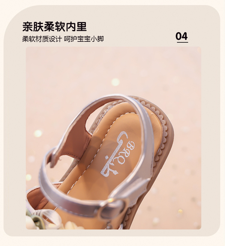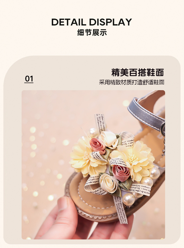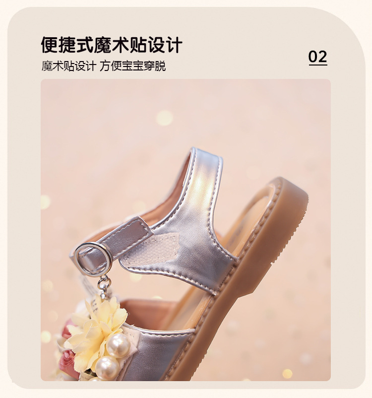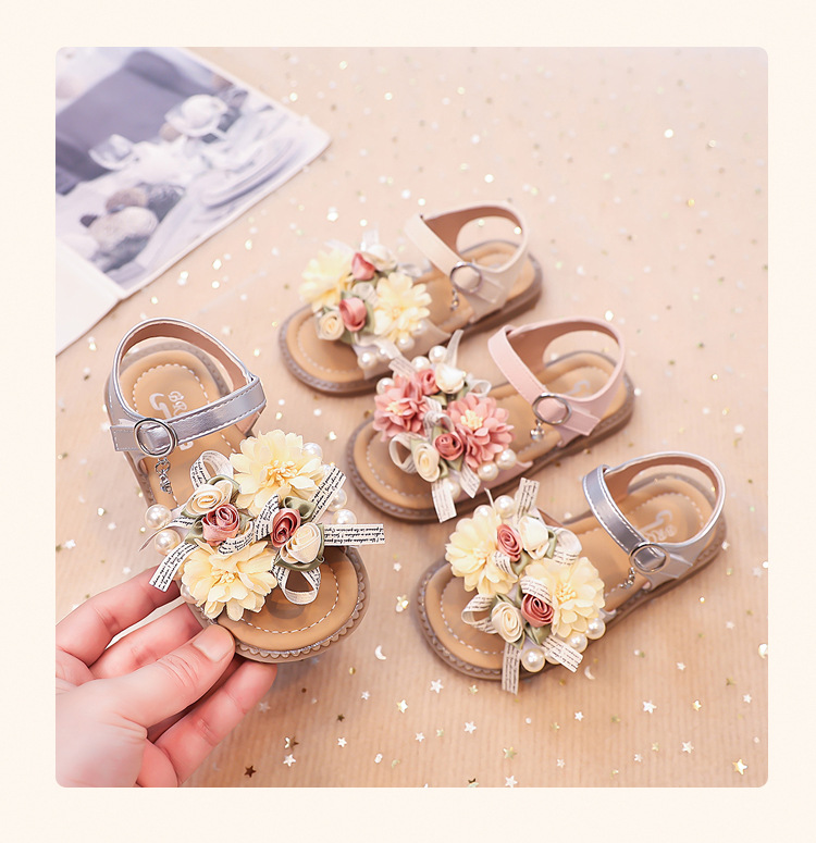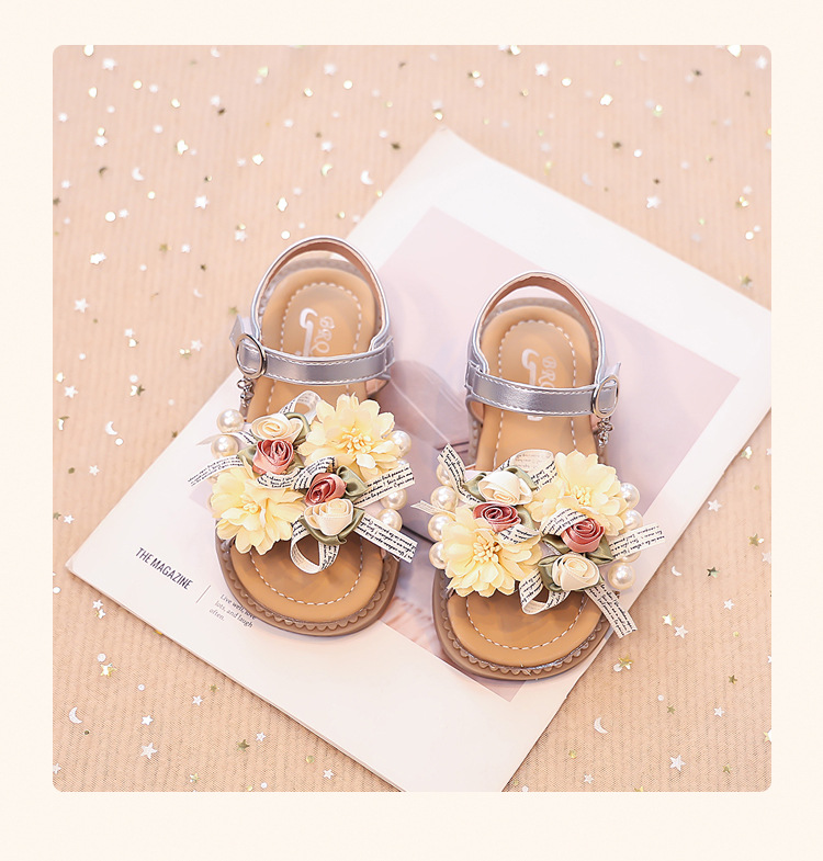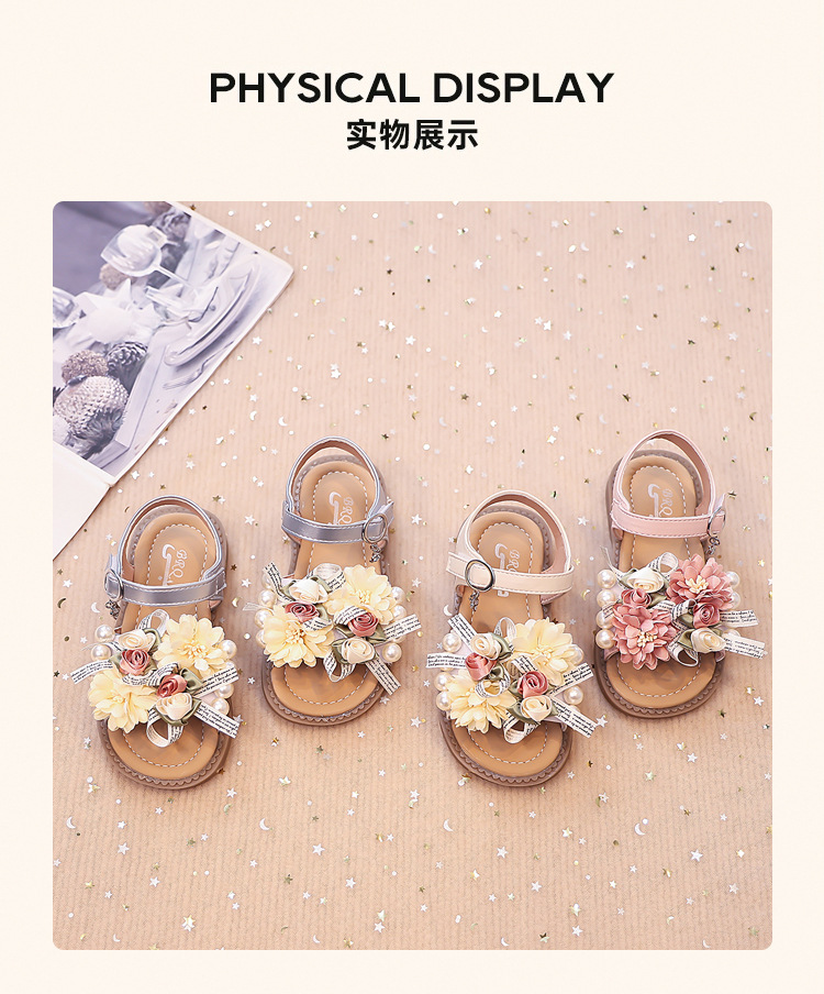 2025 새로운 여름 소녀 진주 꽃 오픈 발가락 샌들 달콤한 소녀 캐주얼 스포츠 비치 신발스토어 가기