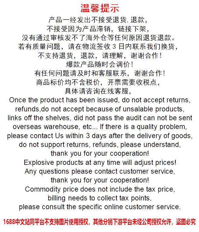 1688온라인 사이트에서 검색된 상품입니다. 알리타플에서는 상품검색/현지구매(구매대행)/국제배송 업무만 제공해드립니다. 해당 상품의 품질 및 상태에 대해서는 확인해 드릴 수 없고 해당 물건이 입고가 된 후에 검수과정을 거쳐야 확인이 가능합니다.