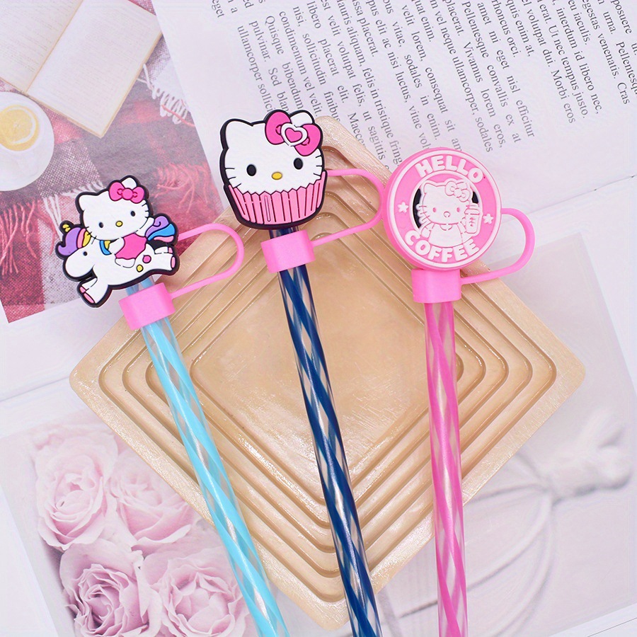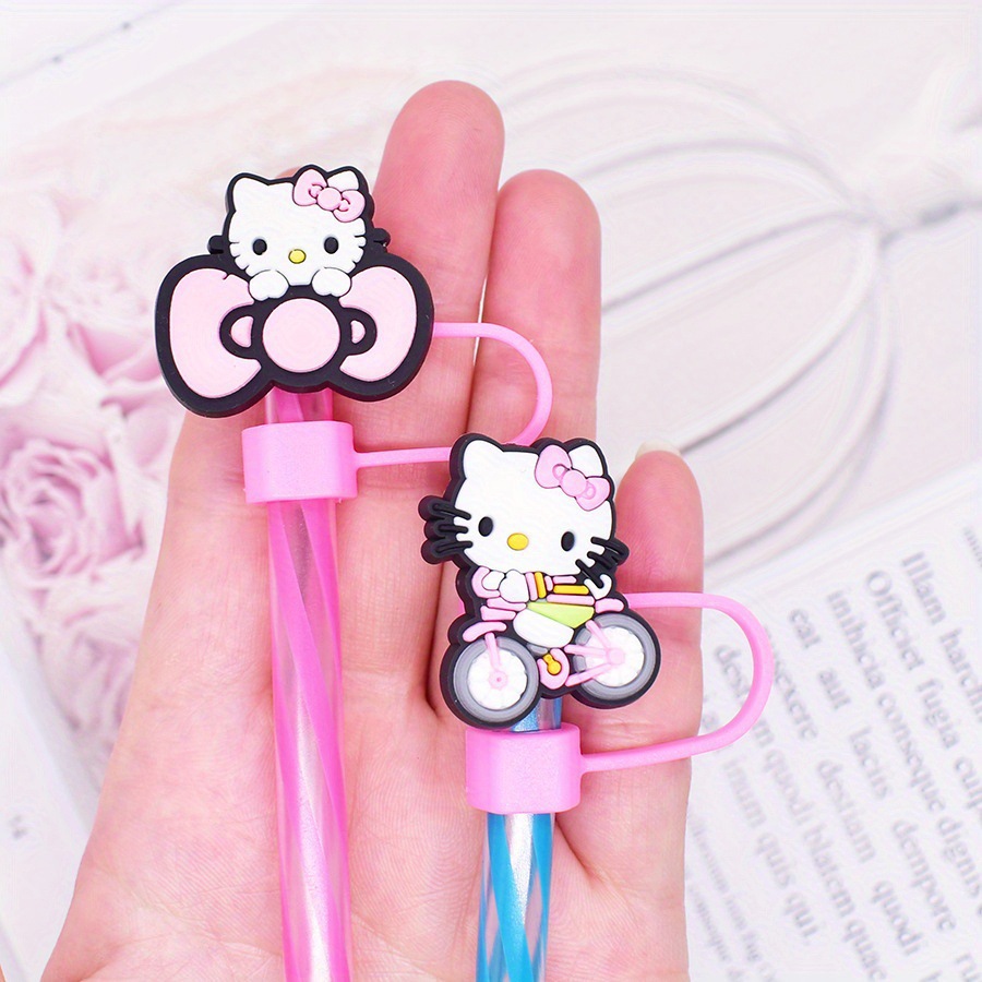 KT 키티 실리콘 10mm 만화 패션 밀짚 모자 부드러운 접착제 유니버설 귀여운 방진 밀짚 세트 파티 장식스토어 가기