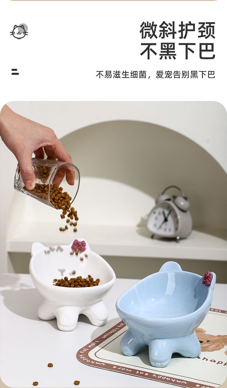 세라믹 고양이와 강아지 밥그릇, 밥그릇, 목보호대, 경사진 물그릇, 발이 높은 귀여운 애완고양이 그릇, 뒤집힘 방지