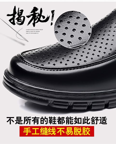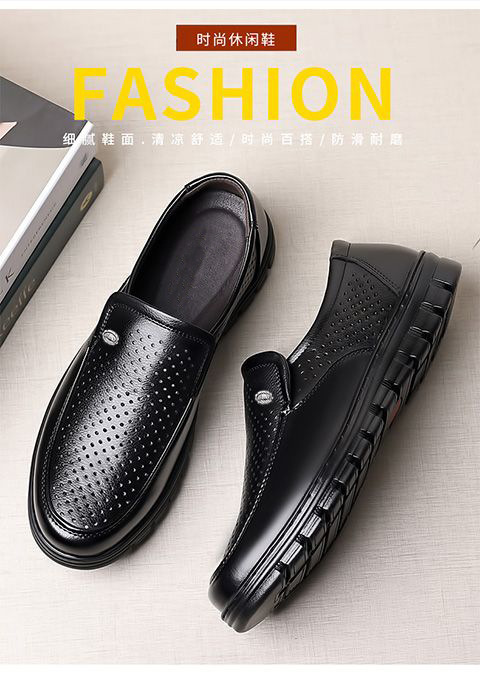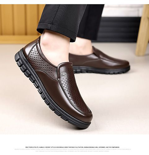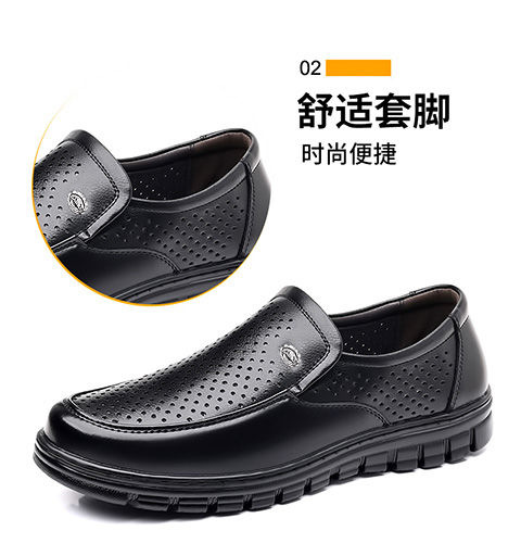 남성 신발 여름 속이 빈 통기성 가죽 신발 남성 부드러운 가죽 가죽 샌들 캐주얼 부드러운 바닥 미끄럼 방지 노인 신발스토어 가기
