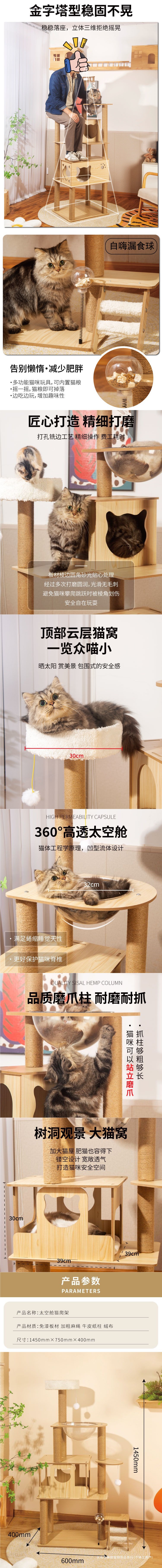 고양이 클라이밍 프레임, 고양이 둥지, 고양이 트리, 일체형 우주 캡슐 고양이 스크래치 보드, 소형, 공간 절약형, 튜브 컬럼, 고양이 클라이밍 프레임, 고양이 장난감스토어 가기