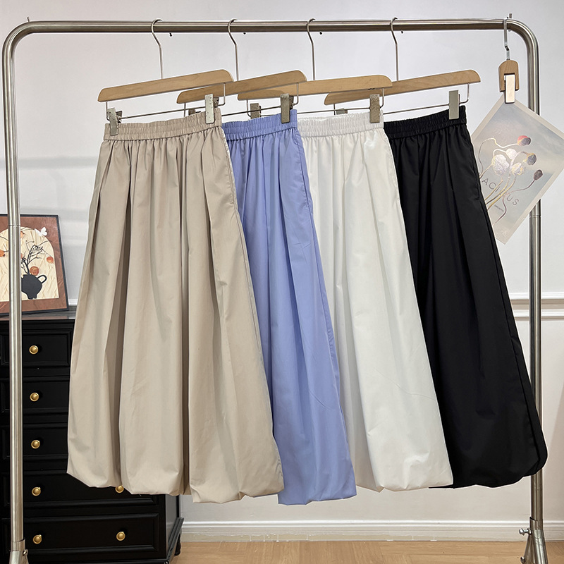 여성을위한 디자인 주름 꽃 스커트 여름 새로운 한국 스타일 하이 웨이스트 A 라인 스커트 중간 길이 푹신한 랜턴 스커트스토어 가기