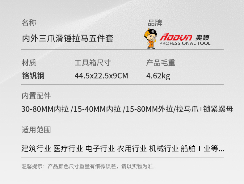 • 내부 및 외부 3조 슬라이딩 해머 풀러 5종 세트