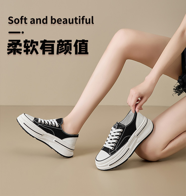 유럽 역 캔버스 신발 여성의 빨간색 로우 탑 플랫 슈즈 2025 새로운 봄과 가을 통기성 두꺼운 밑창 캐주얼 신발스토어 가기