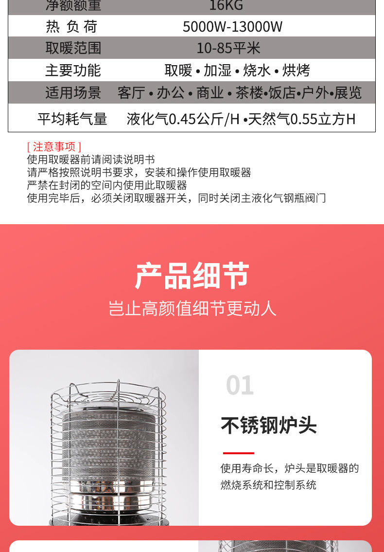 가스 히터 가정용 액화 가스 난방 스토브 상업용 에너지 절약형 고출력 실외 실내 천연 가스 난로
