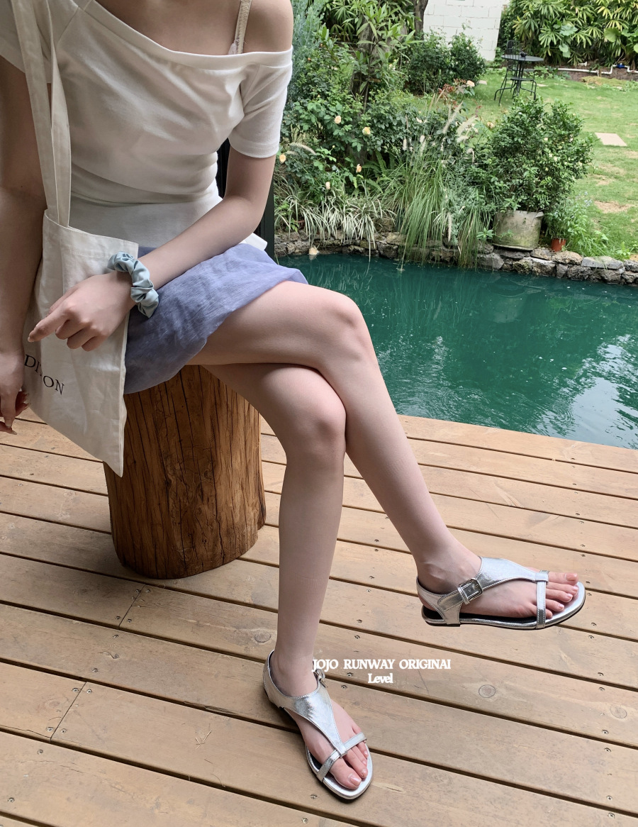 2025 한국 여름 신작 패션 다재다능한 플립 플롭 틈새 플랫 샌들 여성용 비치 복고풍 로마 신발스토어 가기