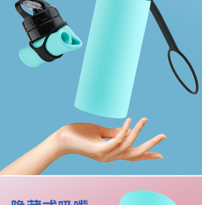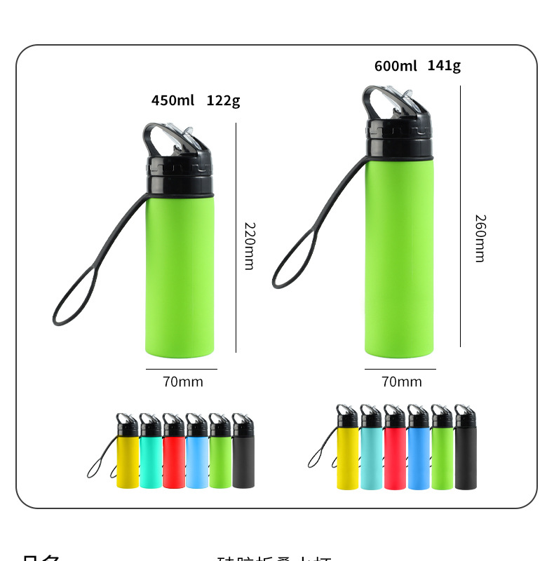 야외 스포츠 물병 실리콘 접는 물병 여행 휴대용 물 컵 솔리드 컬러 선물 컵 크로스 보더스토어 가기