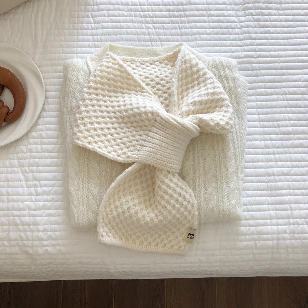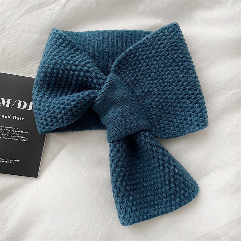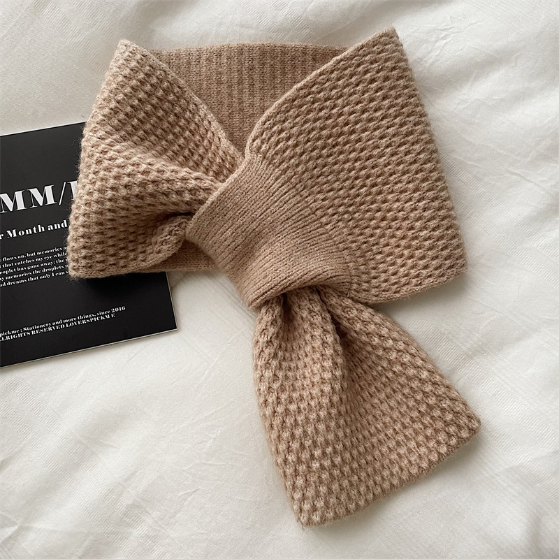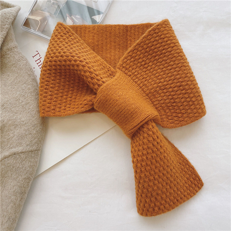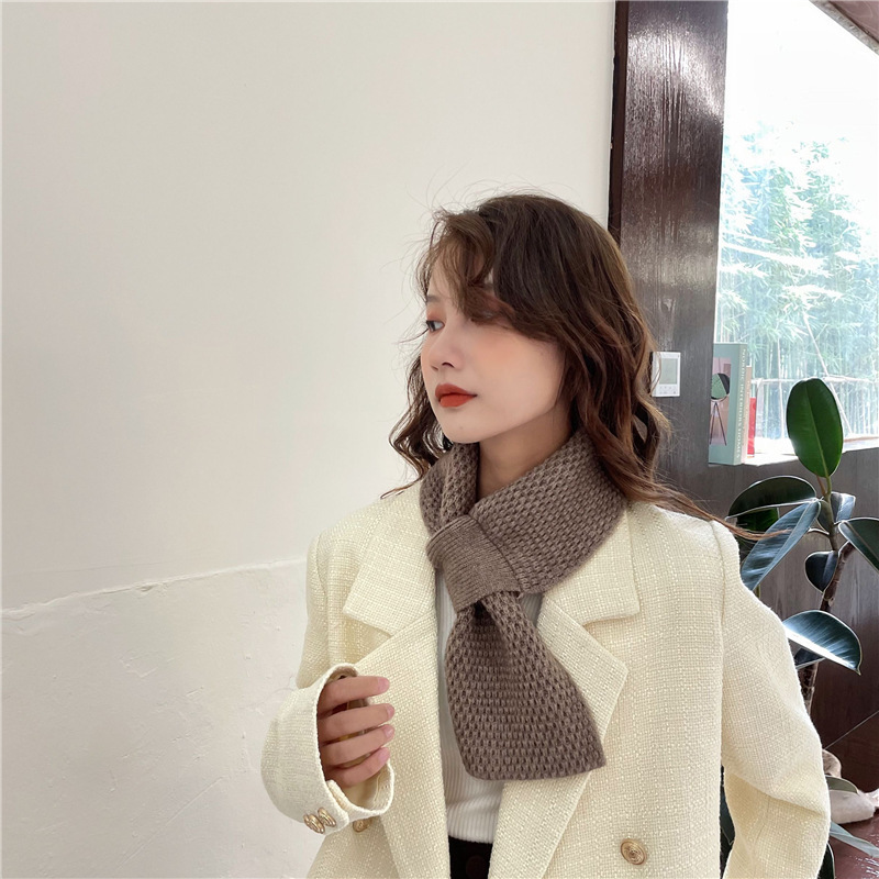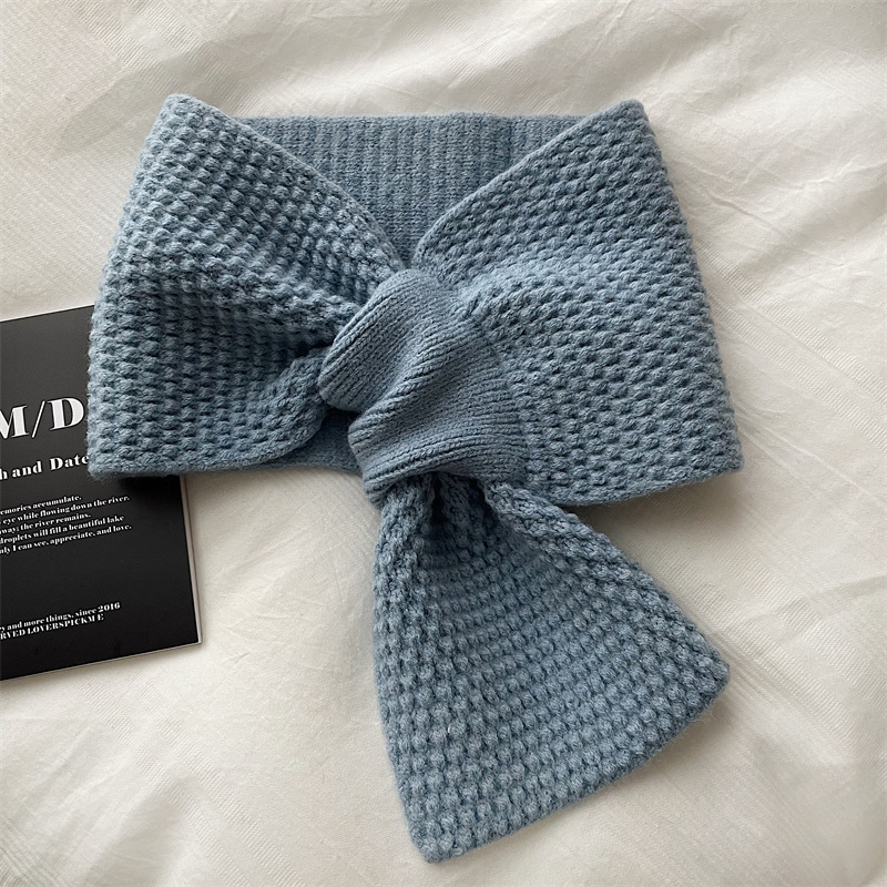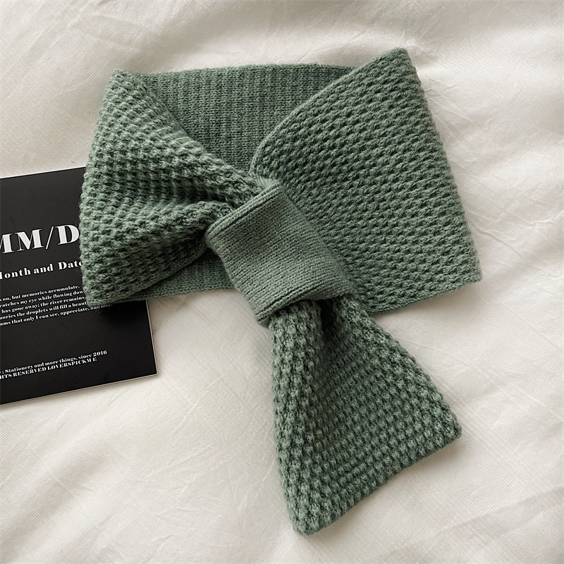 겨울철 여성을 위한 모직 스카프, 인터넷 연예인 게으른 스카프, 니트 크로스 스카프, 한국식 다용도 따뜻한 단색 목 보호대