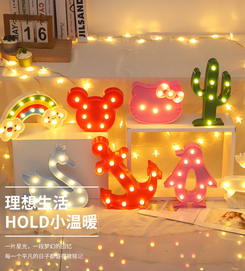 S 백조 동물 led 모델링 빛 선인장 기린 밤 빛 편지 조명 크리스마스 휴일 장식 조명스토어 가기