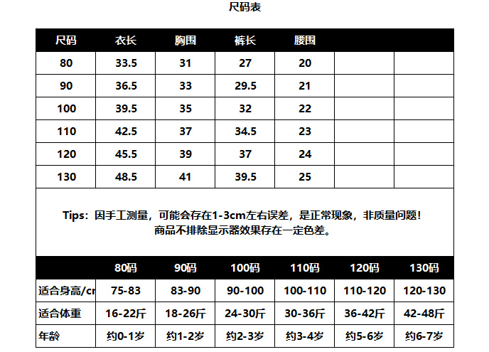 上衣/裤子:100%棉
