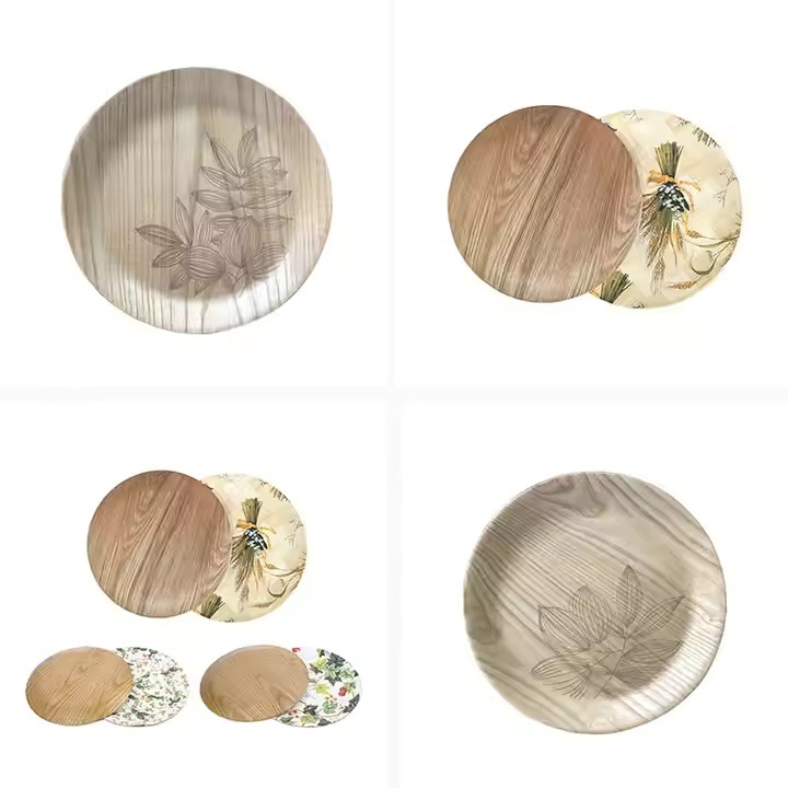 맞춤형 아문나무 프린트 나무 원형 접시, 서양식 디너 접시, 창의적인 아침 식사 접시, 레스토랑 트레이, 스낵 및 과일