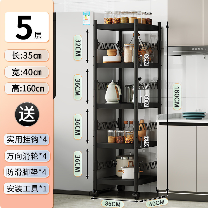 주방 틈새 수납 선반 가정용 바닥에서 천장까지 다층 냄비 수납 선반 전자 레인지 선반 이동식스토어 가기