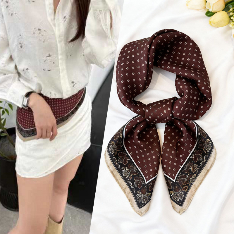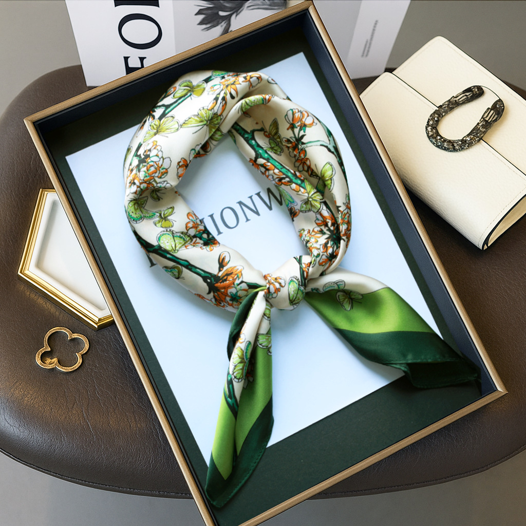 70 한국어 버전 달콤한 녹색 꽃 나비 시뮬레이션 실크 스카프 넥 스카프 작은 사각형 스카프 자외선 차단 스카프 고급 도매스토어 가기