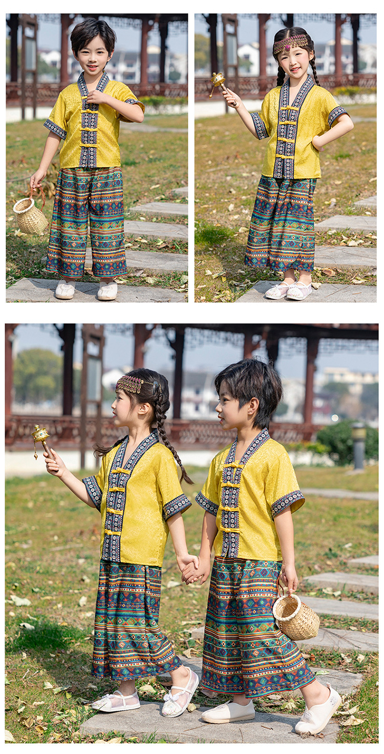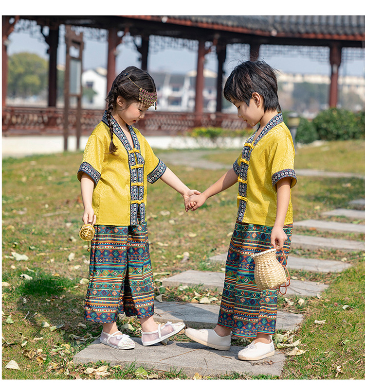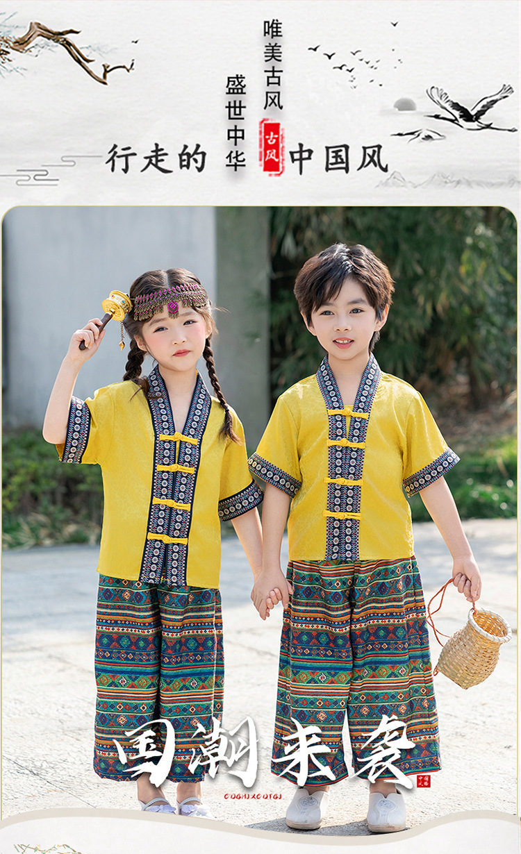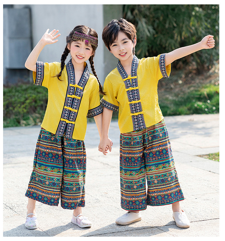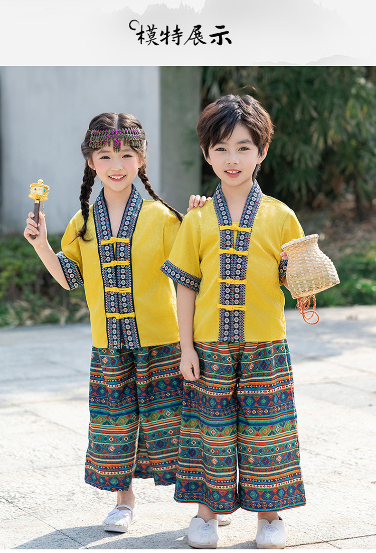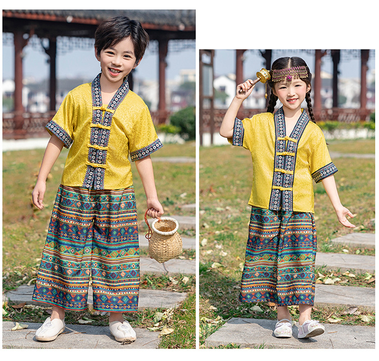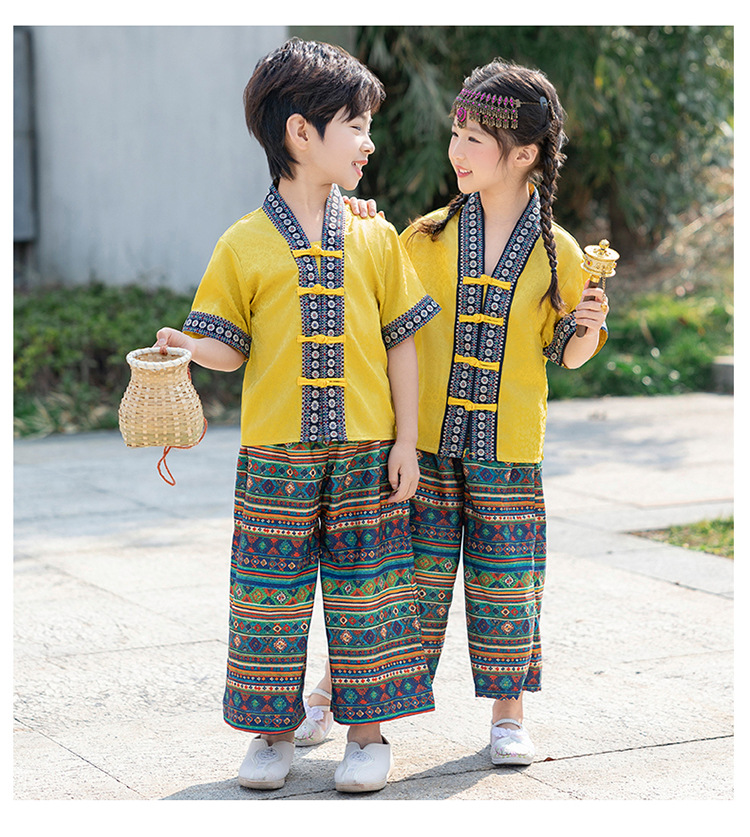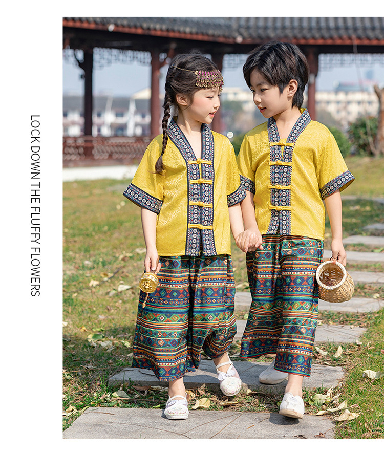 소년 소녀 중국 스타일 한푸 다이 댄스 의류 자매와 형제 의류 유치원 정원 의류 소수자 스타일 공연 의류