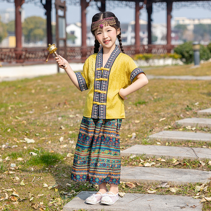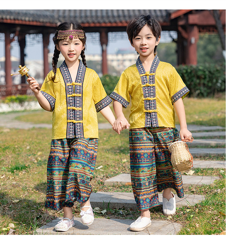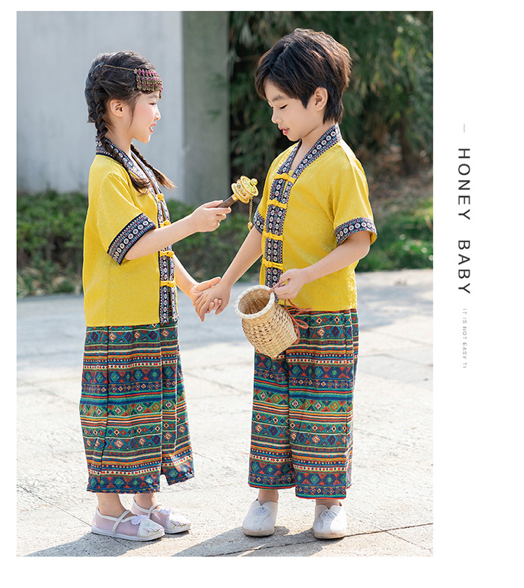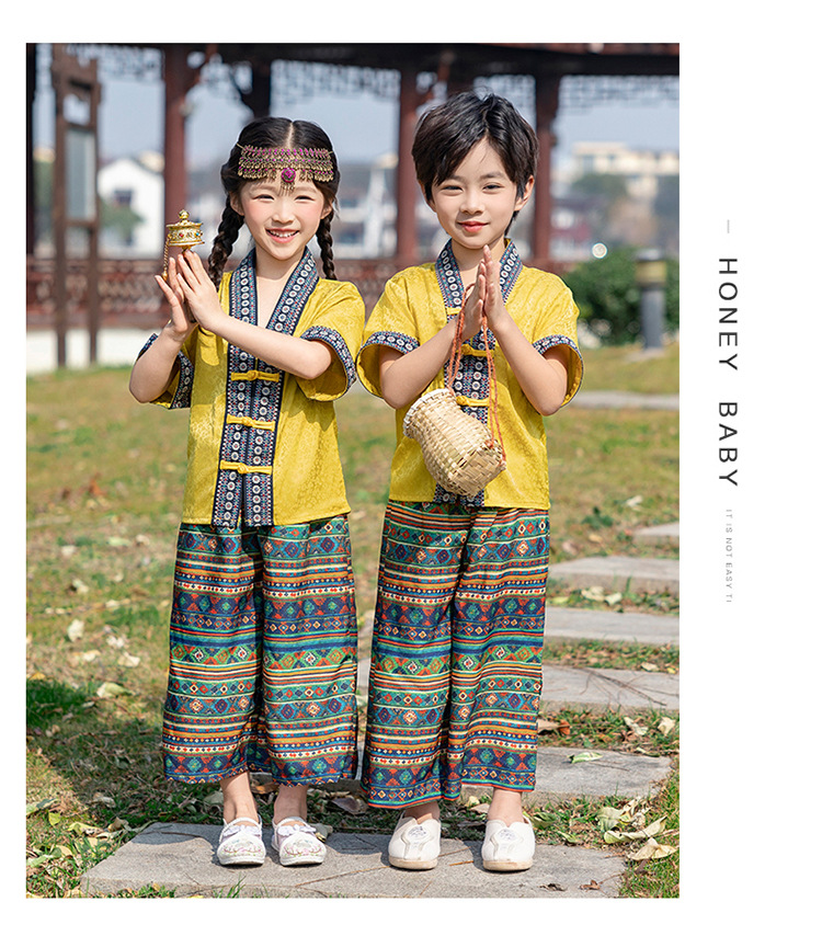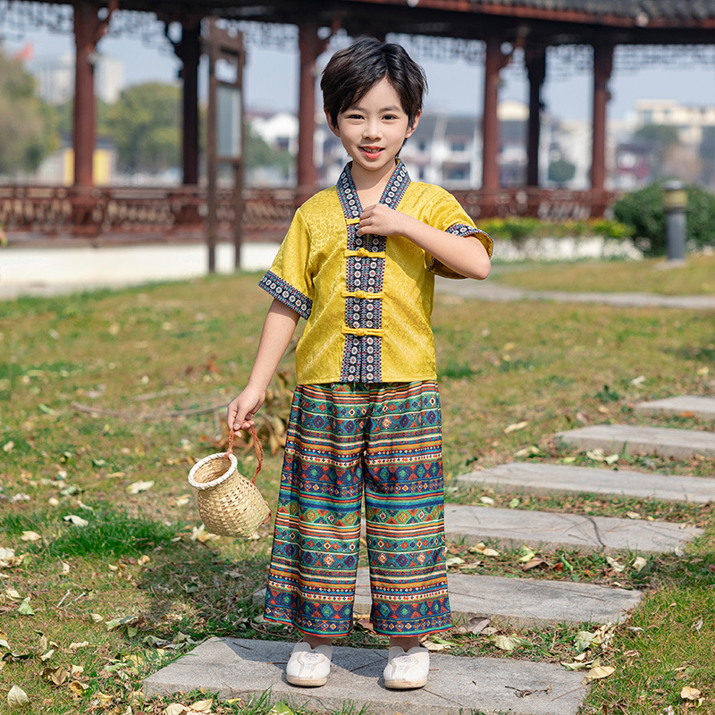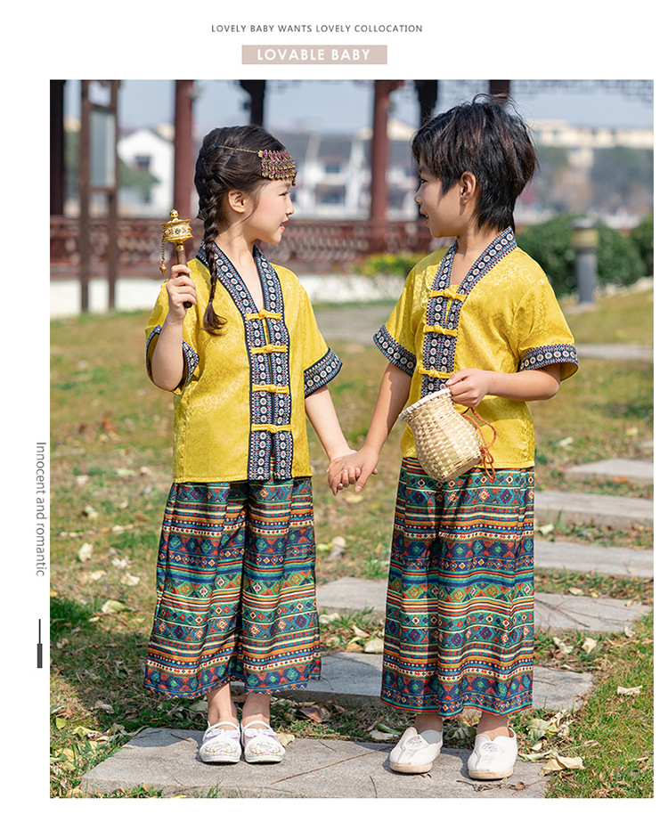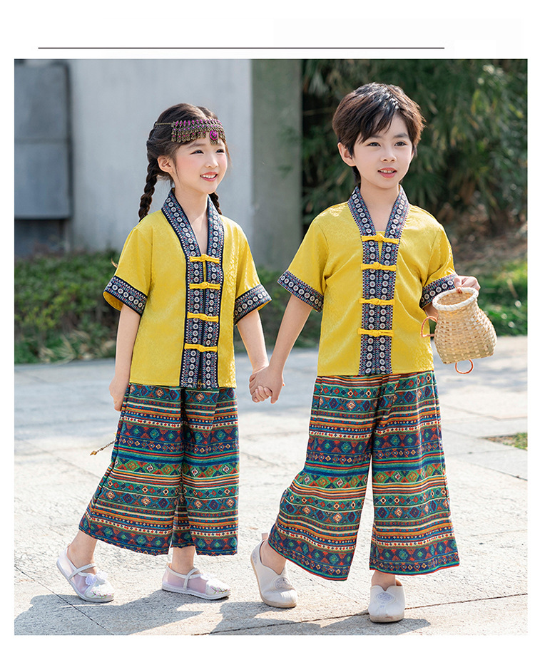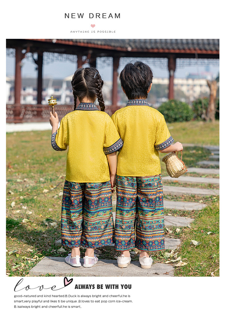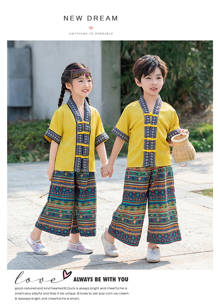 소년 소녀 중국 스타일 한푸 다이 댄스 의류 자매와 형제 의류 유치원 정원 의류 소수자 스타일 공연 의류