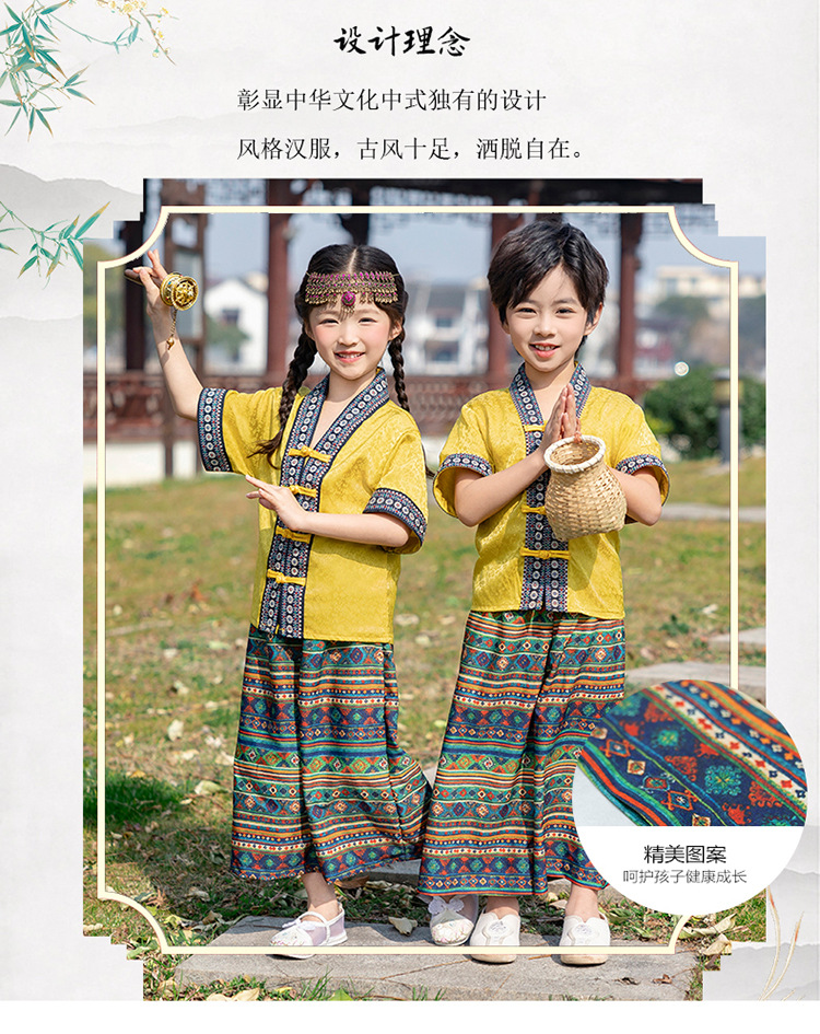 소년 소녀 중국 스타일 한푸 다이 댄스 의류 자매와 형제 의류 유치원 정원 의류 소수자 스타일 공연 의류스토어 가기